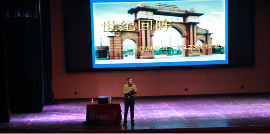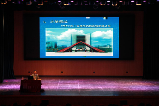 在第一部分中,梁锦唐老师讲到我校经历了初创榆关、复校唐山、搬迁峨眉、定址蓉城和扩建犀浦的整个过程。梁老师首先讲到金达先生向清政府建议成立铁路学堂后北洋铁路总局于1896年创办山海关铁路官学堂,至此我校正式成立。紧接着又诙谐幽默地向大家介绍了更多关于他在唐山校区学习生活的故事,展示了许多不同校址的图片,使新生们更加熟悉如今一校两地三校区的办学模式。
