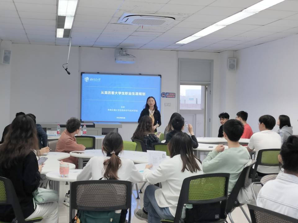 为帮助本科学生明确职业生涯规划,解决同学们在简历制作方面的难题,2022年5月19日晚上,面向我院本科生的“从简历看大学生职业生涯规划”就业指导工作坊在九里校区J4609A教室顺利举行。本次工作坊邀请了信息科学与技术学院党委副书记、国家职业生涯规划师马琼副教授主讲,糖心Vlog