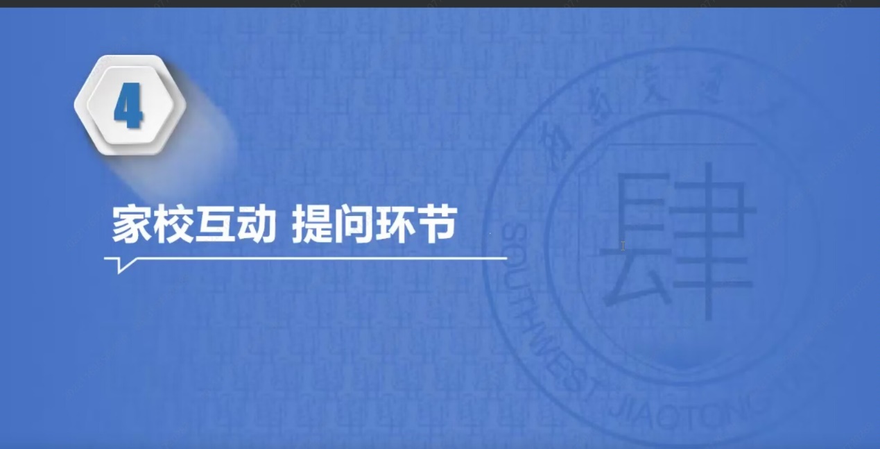 、教学相关信息、本科教育中心三个方面进行了介绍。他带大家主要了解了学院的学位教育、师资力量以及本科人才培养等相关知识,并且对大家关心的大类分流和专业类别等内容进行了详细讲解,带家长们了解了学校教务网的相关情况,拉近了家校距离。