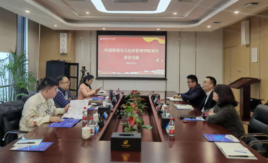 党委副书记杨宏毅就学院目前基本情况、未来发展方向、毕业生就业形势等情况向企业方做了详细的介绍,希望通过本次调研让双方能够在人才培养、实习实践及毕业生就业等方面达成进一步合作,共同搭建校企合作平台;同时,也欢迎两家公司积极挖掘西南期货市场潜力,为经管毕业生们提供更多的就业渠道,助力我院毕业生高质量就业。