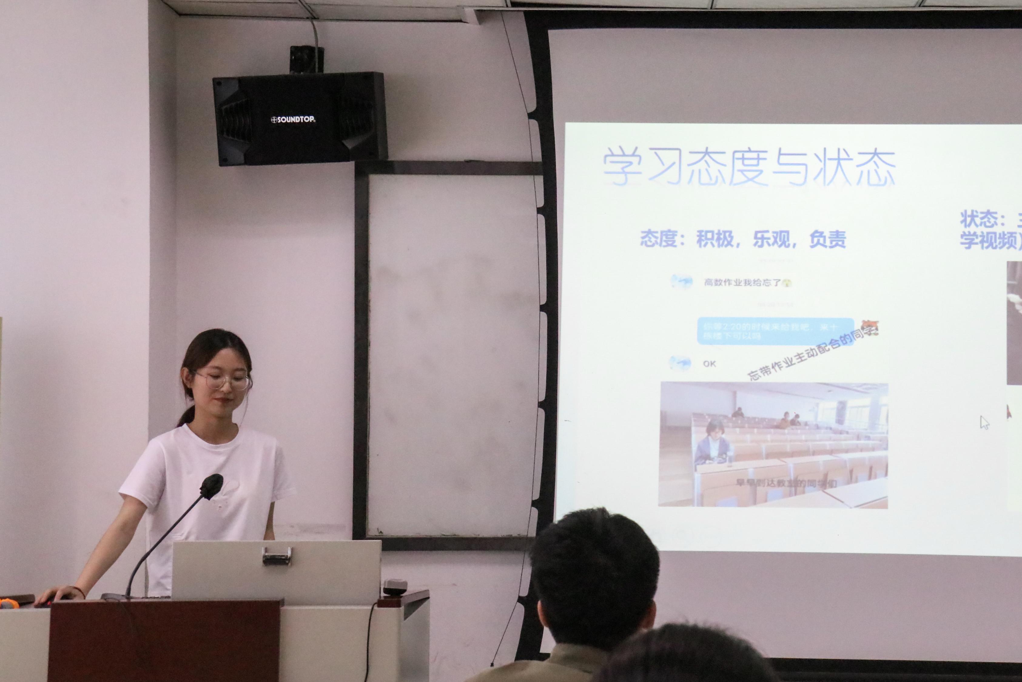随后,各班学习委员依次上台展示班级学风建设与成绩分析。学委们从学习状态、学习风气、日常工作等方面,结合班级上学期学习成绩,对同学们入校以来的学习生活进行了总结分析,并重点对存在的问题做出了阐述,如:晚修难以坚持、成绩两极分化、上课态度散漫、存在学习焦虑等。在提出问题的同时,各班学委也积极分享经验,讲述了自己在学风建设中的思考与理念,如建设学习交流群、开展学习打卡等,相互取长补短,讨论如何把班级学风建设工作落到实处。