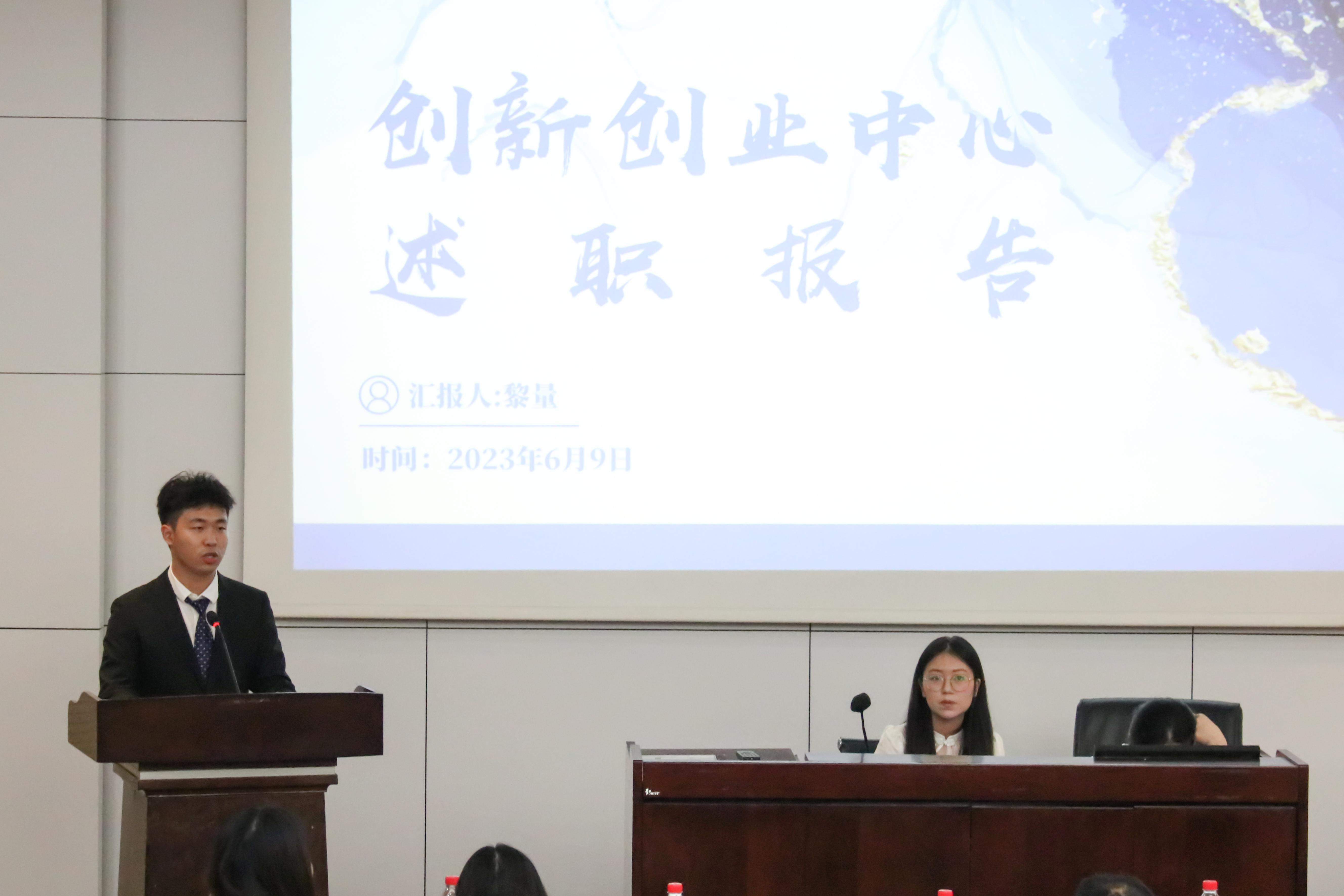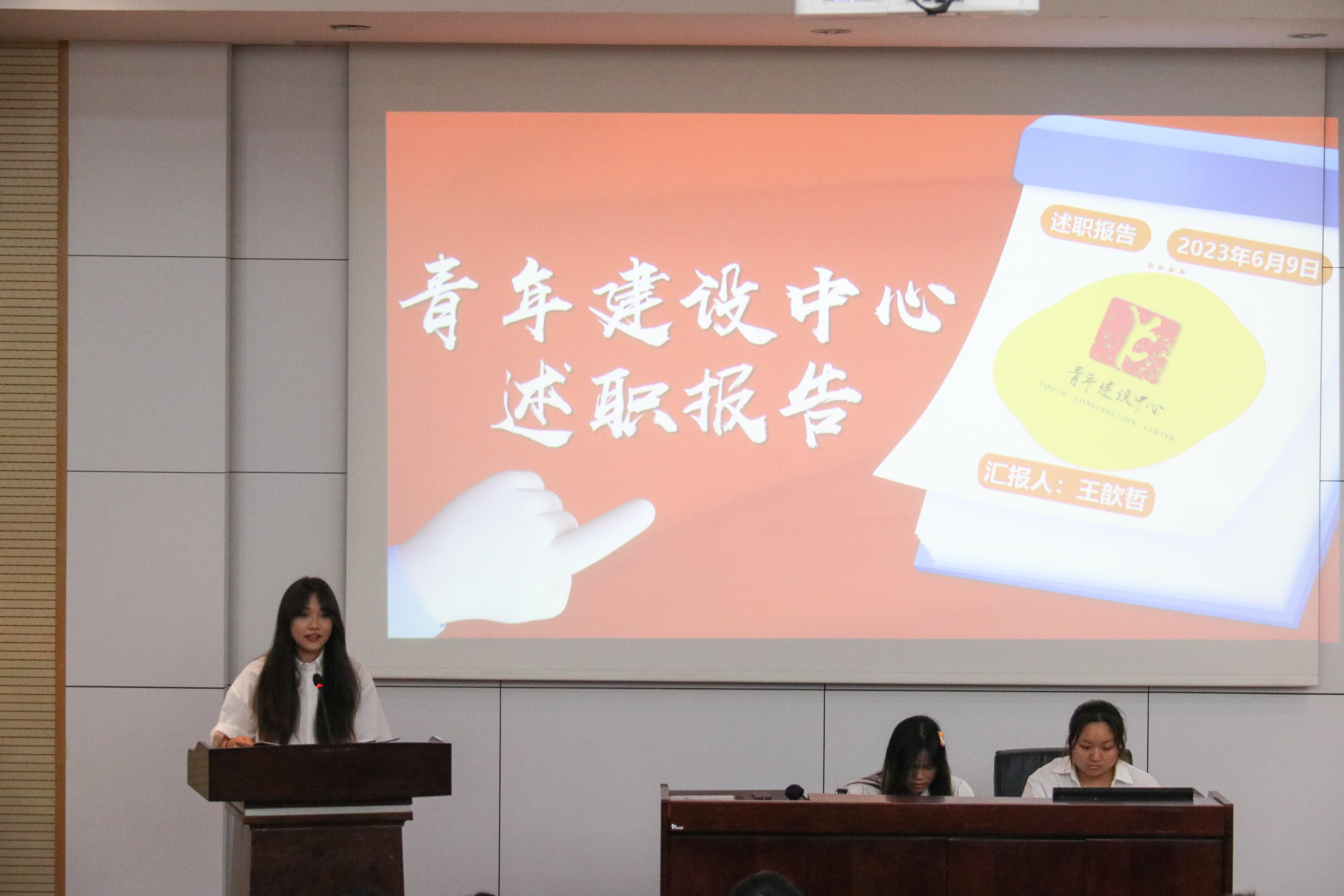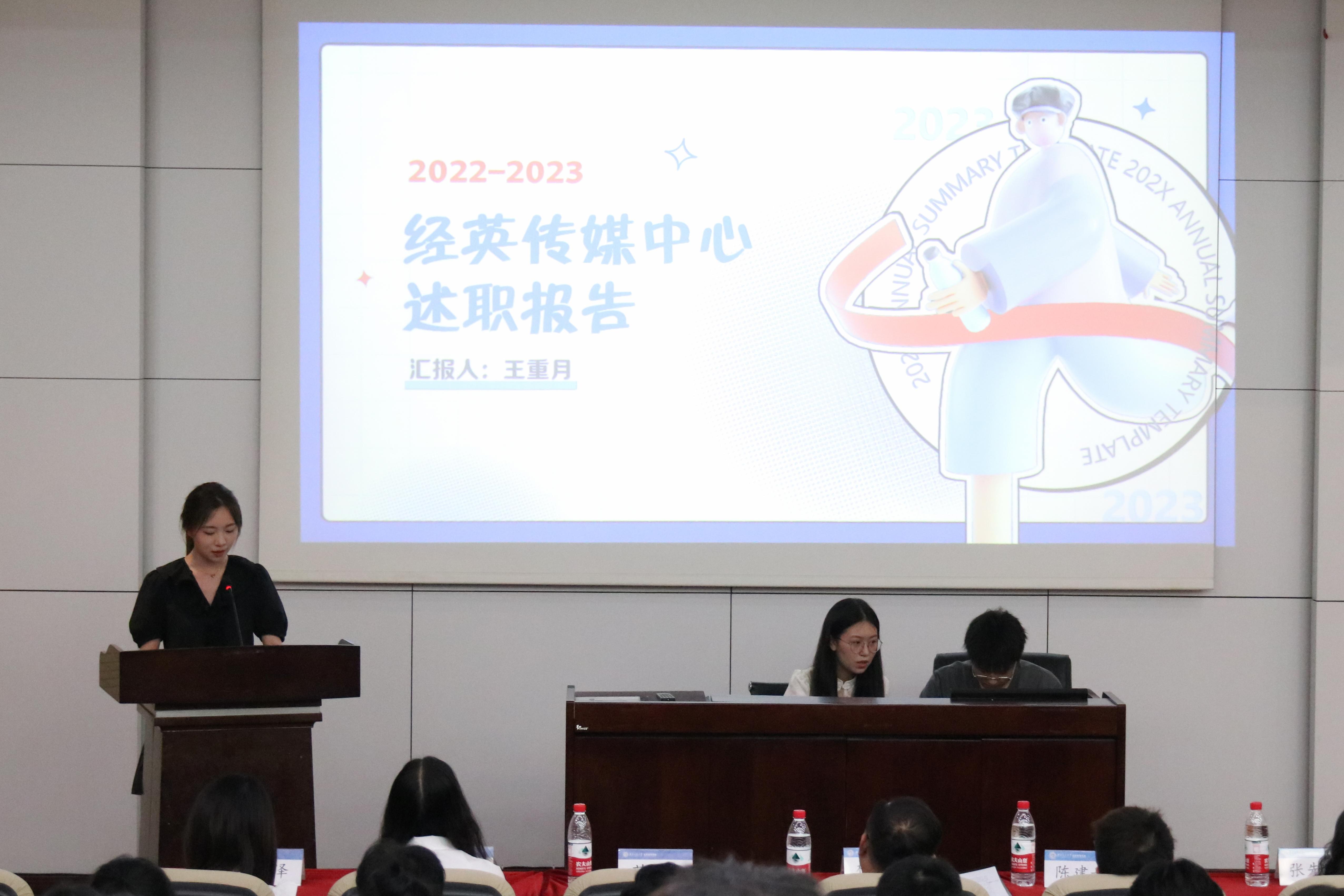 我院的六个团学组织青年建设中心、学生会、青年志愿者协会、创新创业中心、经英传媒中心、班级联合会的负责人依次述职。他们不仅回顾总结了一学年的工作,也对全体团学组织成员的辛勤付出和积极工作表示由衷的感谢。