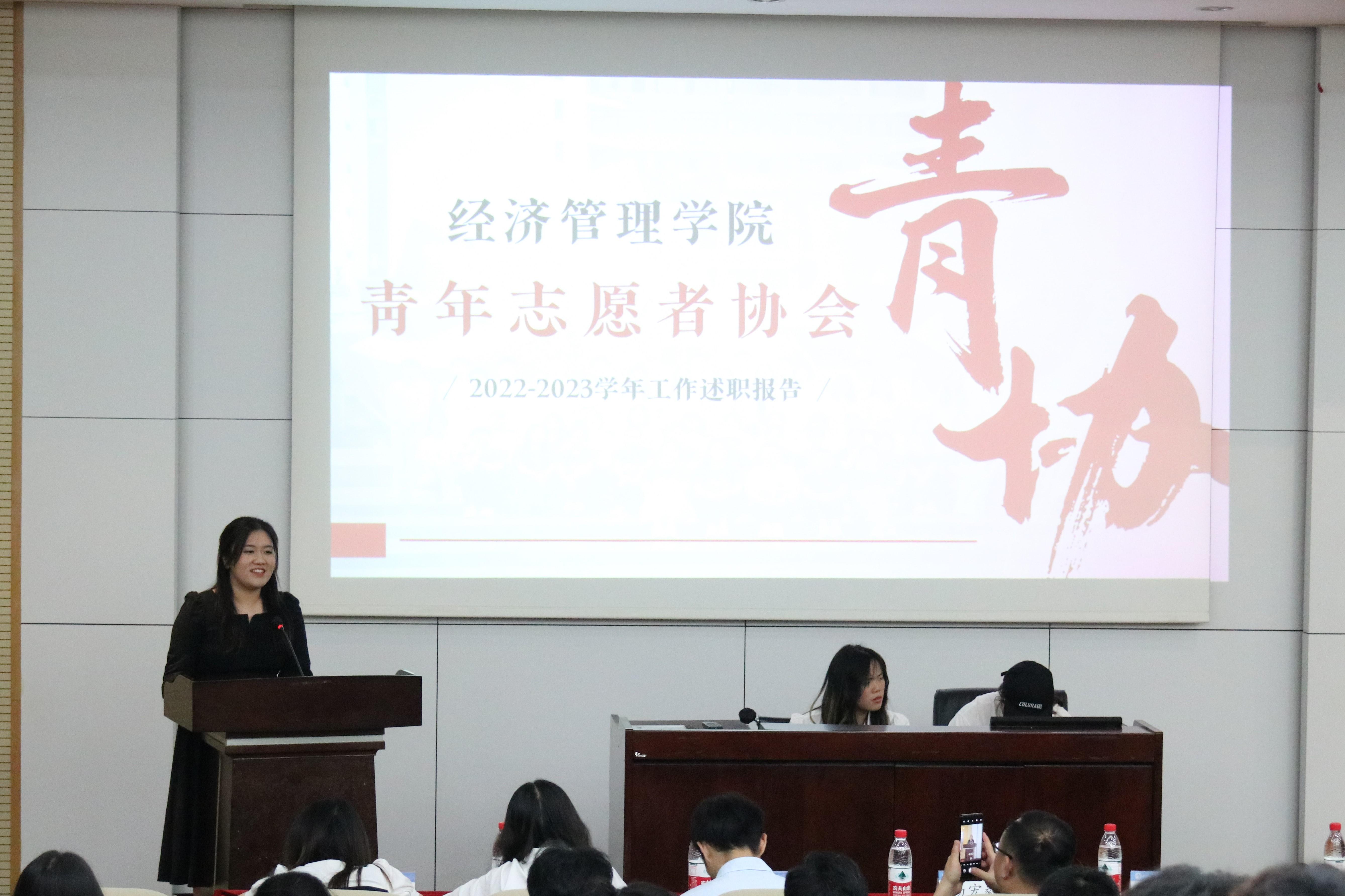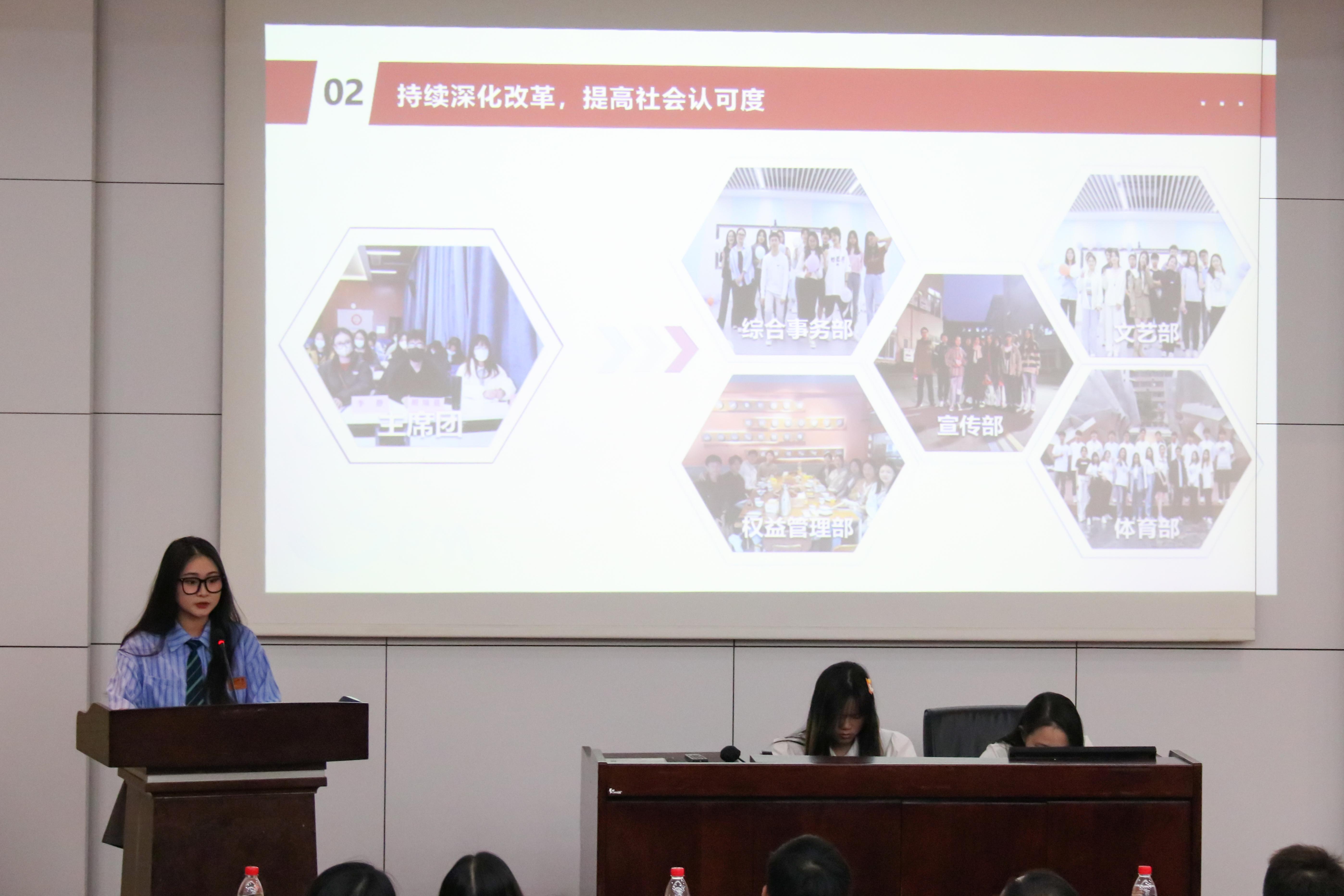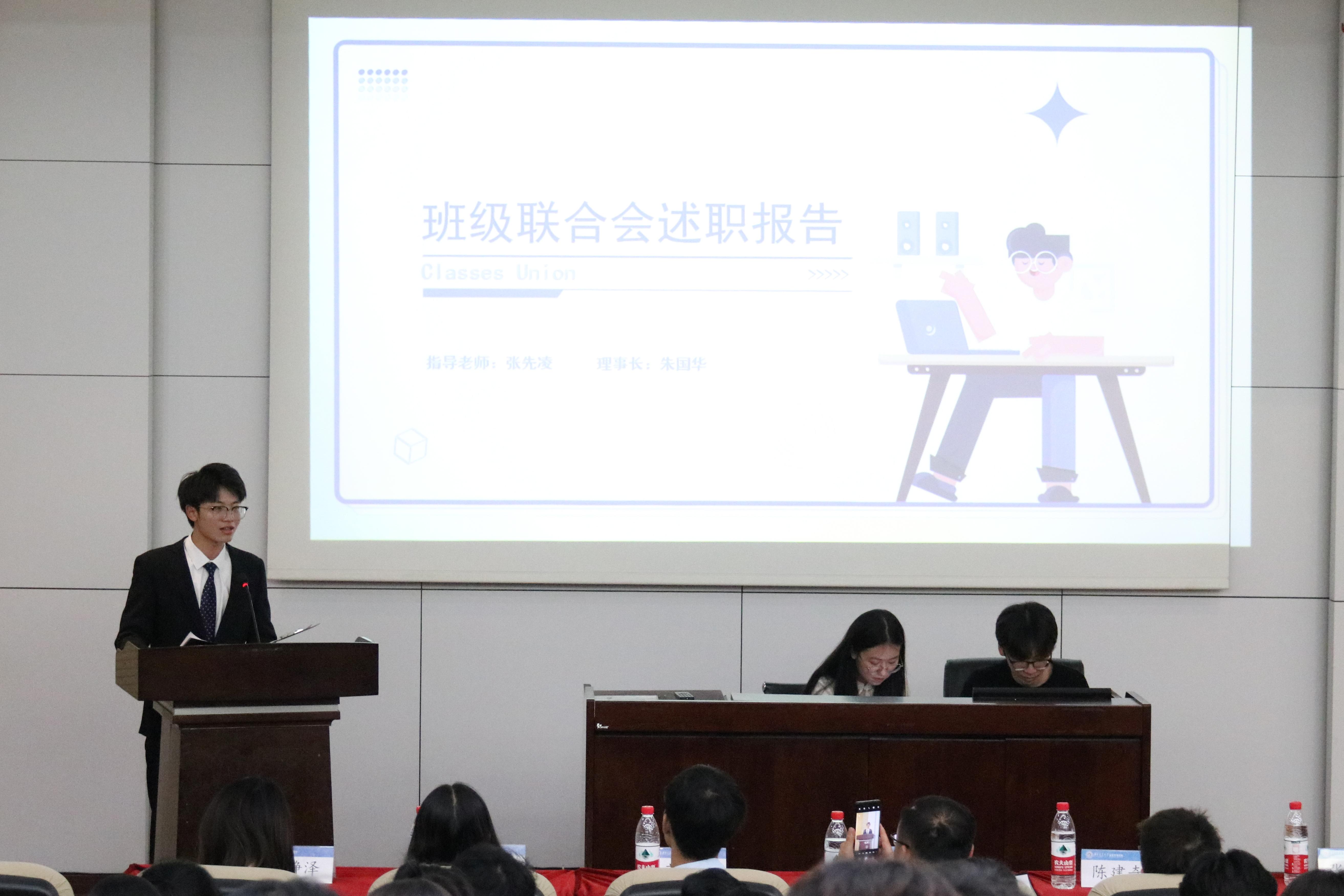 我院的六个团学组织青年建设中心、学生会、青年志愿者协会、创新创业中心、经英传媒中心、班级联合会的负责人依次述职。他们不仅回顾总结了一学年的工作,也对全体团学组织成员的辛勤付出和积极工作表示由衷的感谢。