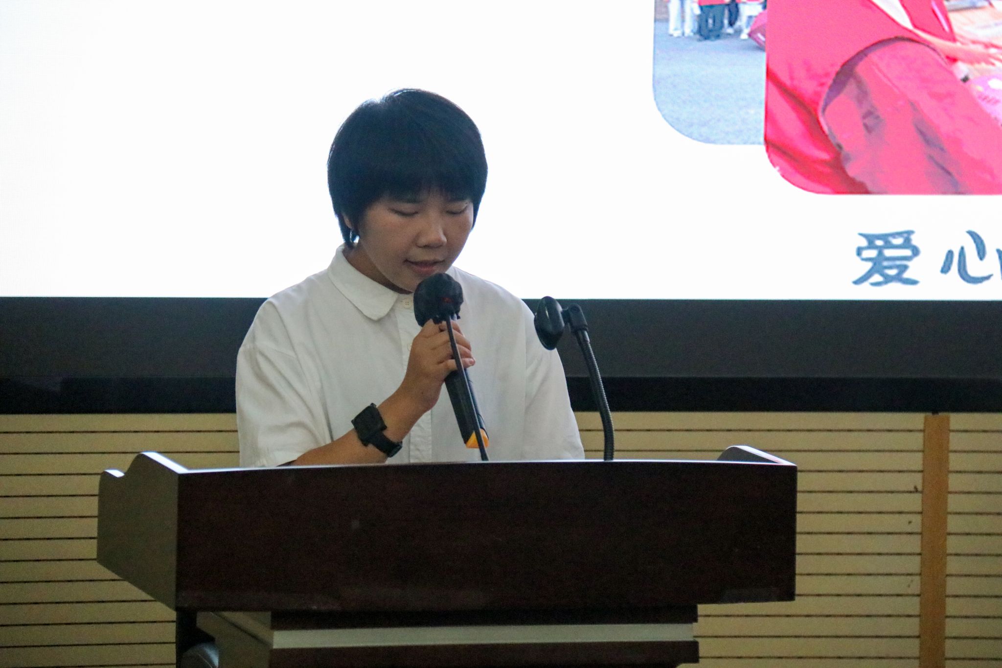 余小英老师为各团学组织主席团成员代表颁发了任职证书并为大会致辞。她对同学们的积极态度和工作表现给予了肯定,同时对新任团学组织干部提出了三点要求:扛起责任、勇于奉献和努力成长。