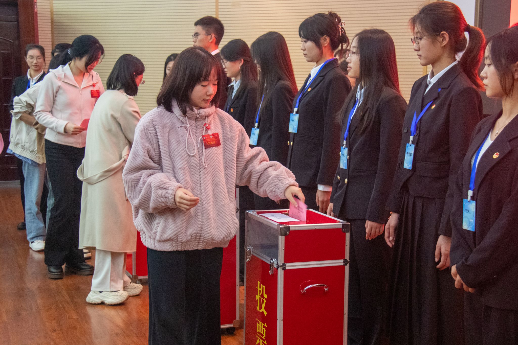 党委副书记、纪委书记余小英致辞。她指出,在学校团委、学院党委的正确领导下,在校学生会、校研究生会和学院团委的悉心指导下,我院学生会、研究生会始终以“全心全意服务同学”为宗旨,在诸多方面取得了显著的进步和优异的成绩,为学院的建设和发展贡献了鲜活的青春力量。余小英对全体学生代表、学生干部和即将产生的新一届学生会、研究生会组织主席团提出三点希望和要求:第一,筑牢信仰之基,把稳思想之舵。面对时代的变迁和青年群体的新变化,学生组织要发挥自身优势,高举中国特色社会主义伟大旗帜,以党的创新理论武装青年头脑。第二,持续推进改革,强化组织建设。我院学生会、研究生会组织的指导老师和学生干部,要紧紧围绕保持和增强政治性、先进性、群众性这条主线,强化问题意识,以更大的力度、更实的举措,让我院学生组织更具活力与战斗力。第三,丰富校园活动,助力成长成才。学生会、研究生会组织要发挥好联系广大青年学生的桥梁作用,切实代表青年学生,正确行使权利,贴近同学意愿,维护同学权益,要把服务同学成长与支持学校育人工作高质量发展相结合,以更强的组织战斗力提供更优质的服务。