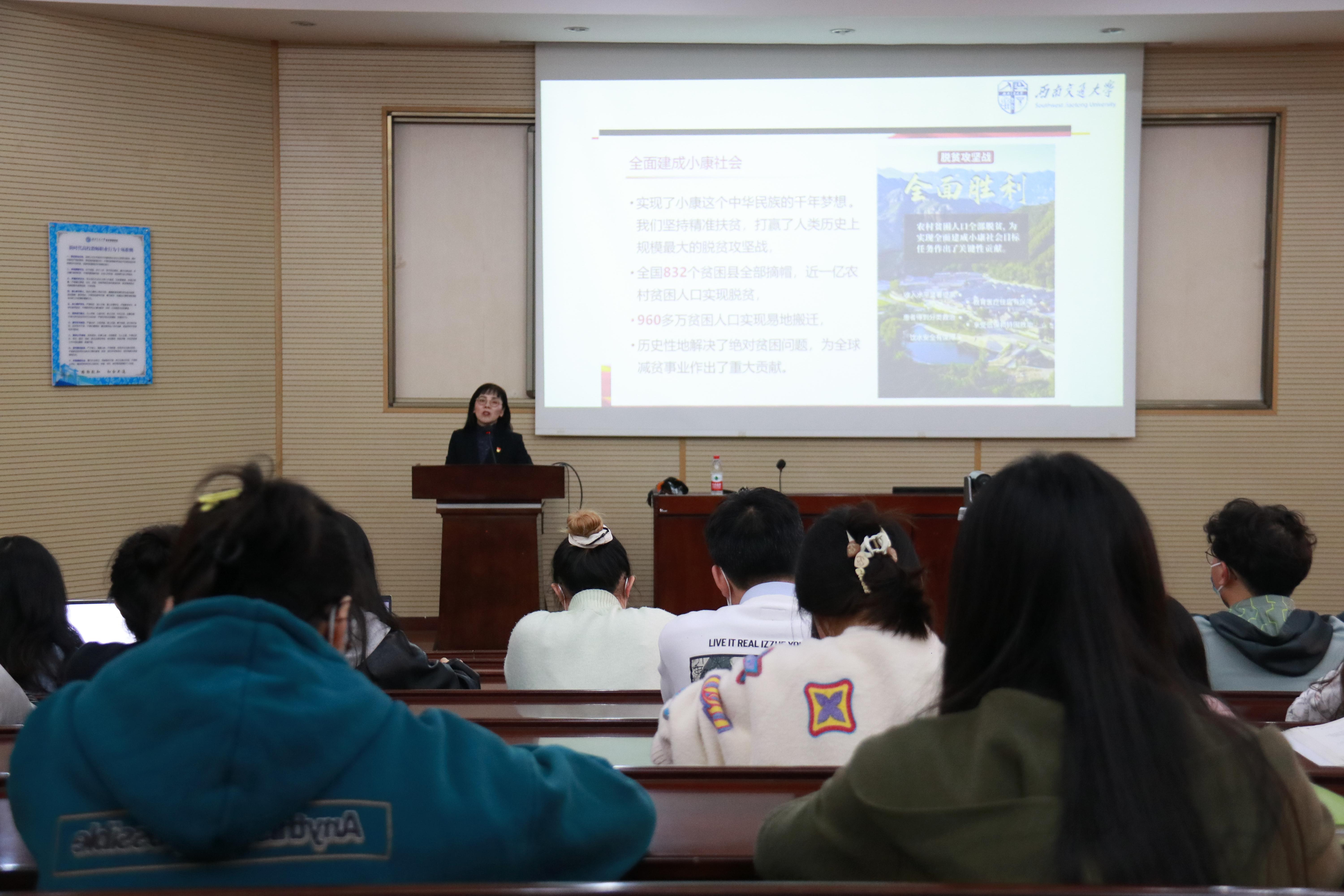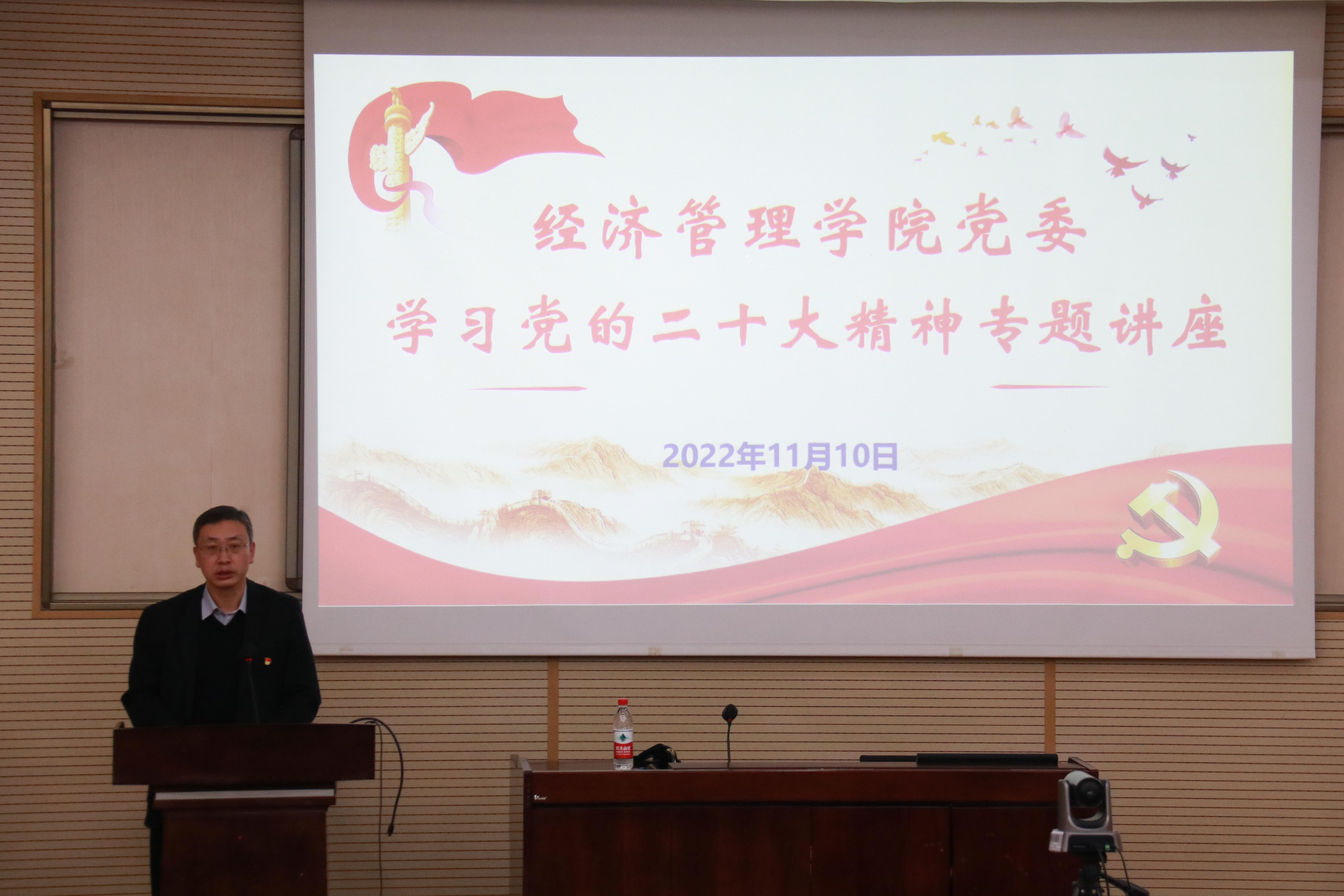 马克思主义学院教授何薇老师于11月10日下午在九里校区0202教室作题为《学报告悟思想开新局——深入学习领会党的二十大精神 坚定不移推进全面从严治党》的专题报告。讲座由学院党委书记王斌主持,学院党委委员、院领导、各师生党支部委员参加了此次专题讲座。
