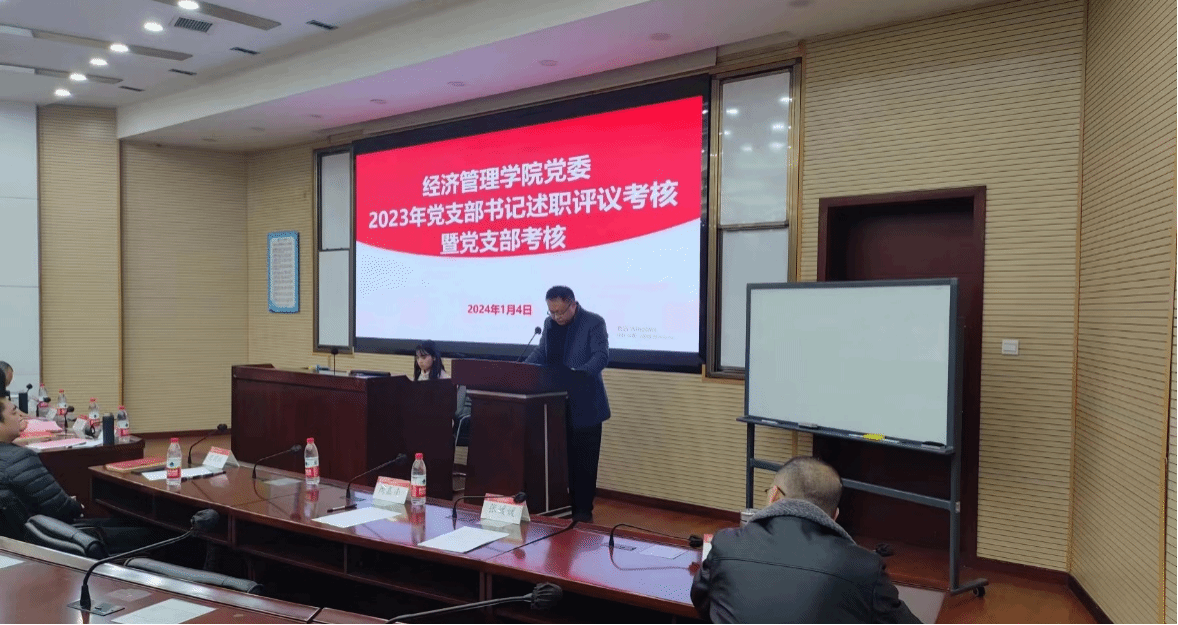 郭强书记对各党支部书记的年度工作述职作了点评和总结。他对各党支部的工作成绩给予了充分肯定,同时也指出了党支部在党建工作中的短板和不足。他针对学院各党支部的工作提出了两点建议:一是各党支部工作要紧密围绕党支部成长提高的目标服务,在做好日常工作的基础上,鼓励优秀党员积极开展帮扶行动,同时研究生党支部也要多组织科研讨论,以加强学风建设;二是各党支部要围绕社会和企业的需求服务,充分发挥经管专业的特色和优势,将优秀经验和实践成果融入工作实践中。