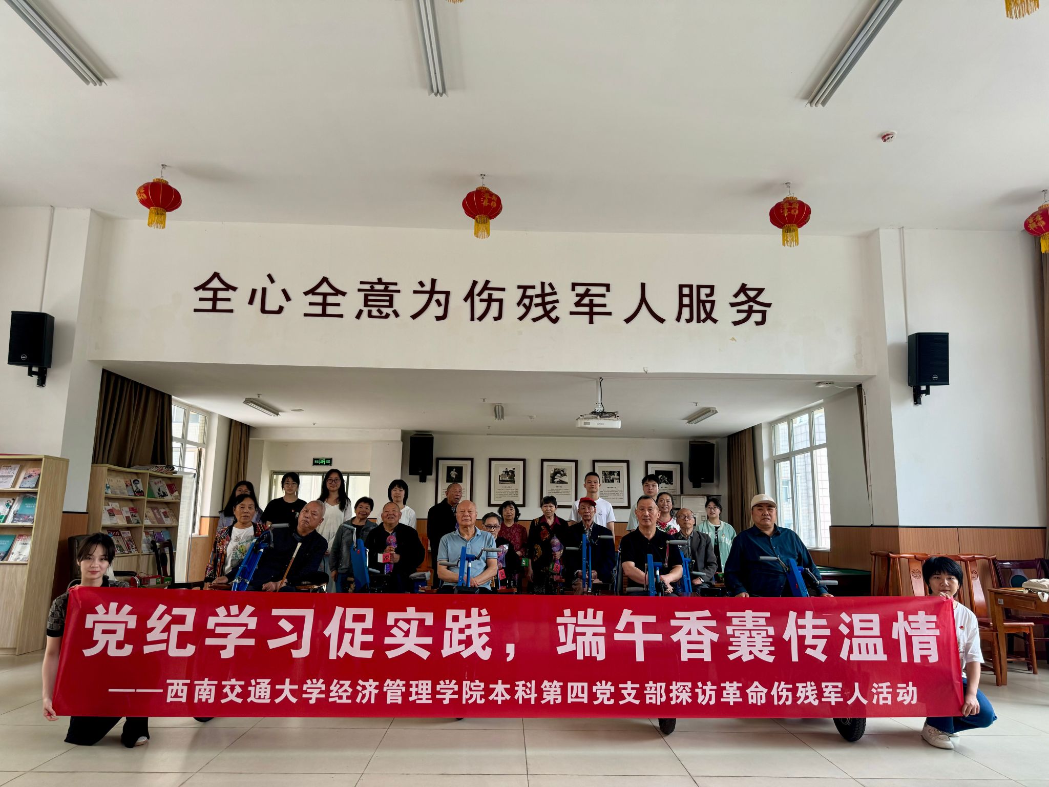 各党支部创新开展党纪学习教育实践活动,探寻廉洁文化与汲取革命传承。6月7日,本科第二党支部深入“荷风廉韵”廉洁文化教育基地,以“警钟长鸣知敬畏,清正廉洁葆本色”为主题,通过实地学习筑牢拒腐防变的思想道德防线。6月6日,本科第四党支部创新形式举办支部书记讲党课活动,从党史视角深刻阐述了党的纪律建设的重要性,结合端午佳节组织党员参与香囊手工制作、带领新预备党员前往四川省革命伤残军人休养院,通过聆听革命故事、赠送端午香囊与艾草锤,在革命前辈的指引下深化党纪学习教育的心得体会,实现学思践悟的有机结合。