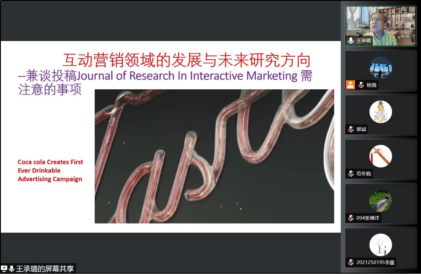 王承璐教授梳理了互动营销的发展历程,他提出,互动营销是通过积极的客户联系、参与和互动进行双向价值创造和交流的过程。互动营销随着互联网和电子商务的广泛应用迅速发展,技术进步提供了推动互动营销发展的实用工具,而电商和社交媒体平台革命正在重塑新的商务生态系统,从而促进企业和客户联系和互动。随后,王承璐教授从社交媒体、直播商务、虚拟现实、粉丝社区等研究领域向我院师生分析了互动营销领域具体的商业应用场景和学术研究主题。
