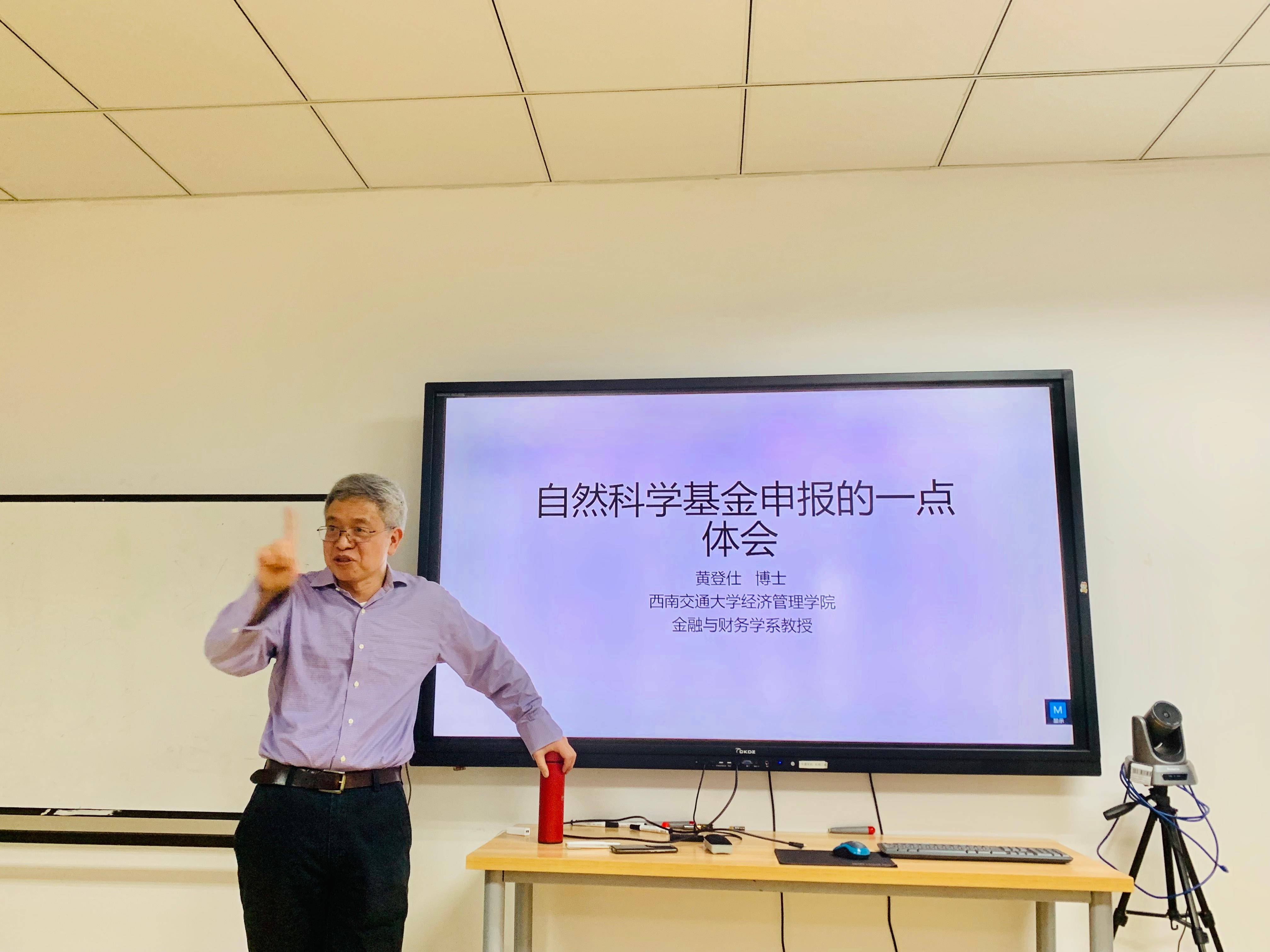 2021年12月7日下午三点,在九里校区0411室,金融市场与公司金融科研团队负责人黄登仕教授以“自然科学基金申报的一点体会”为题给经管学院的师生带来了一场引人入胜的学术讲座。我院副院长周嘉南教授主持此次研讨会。