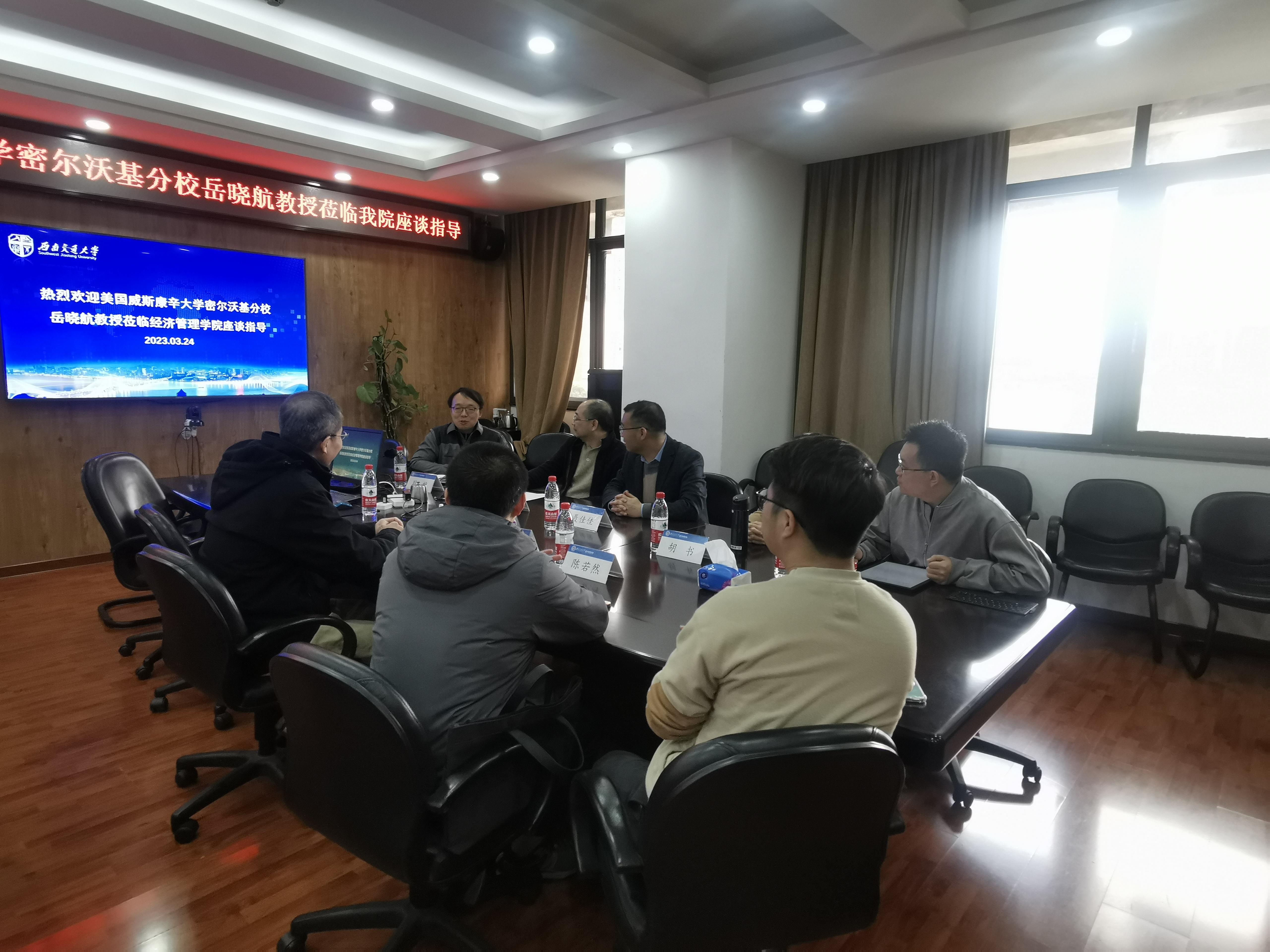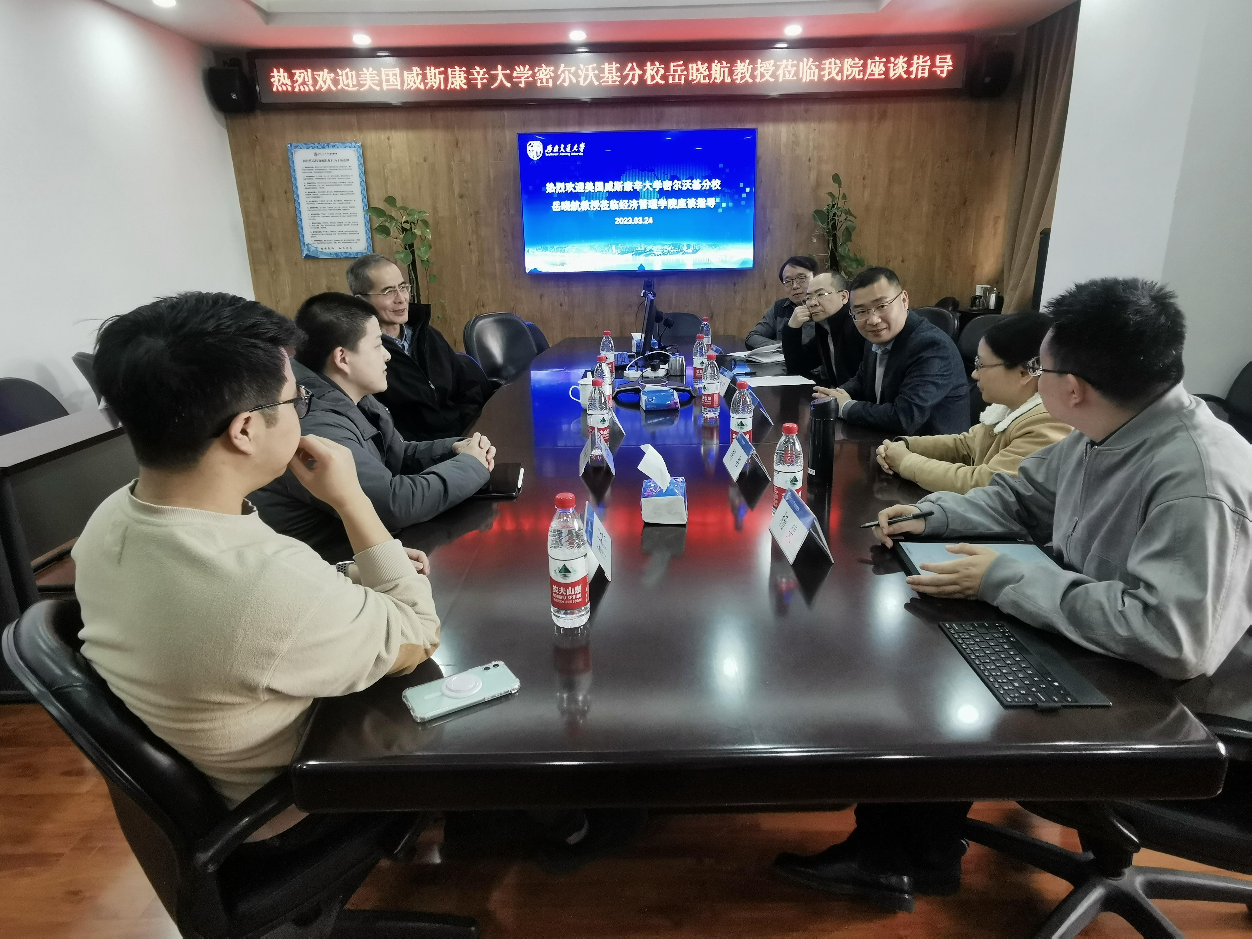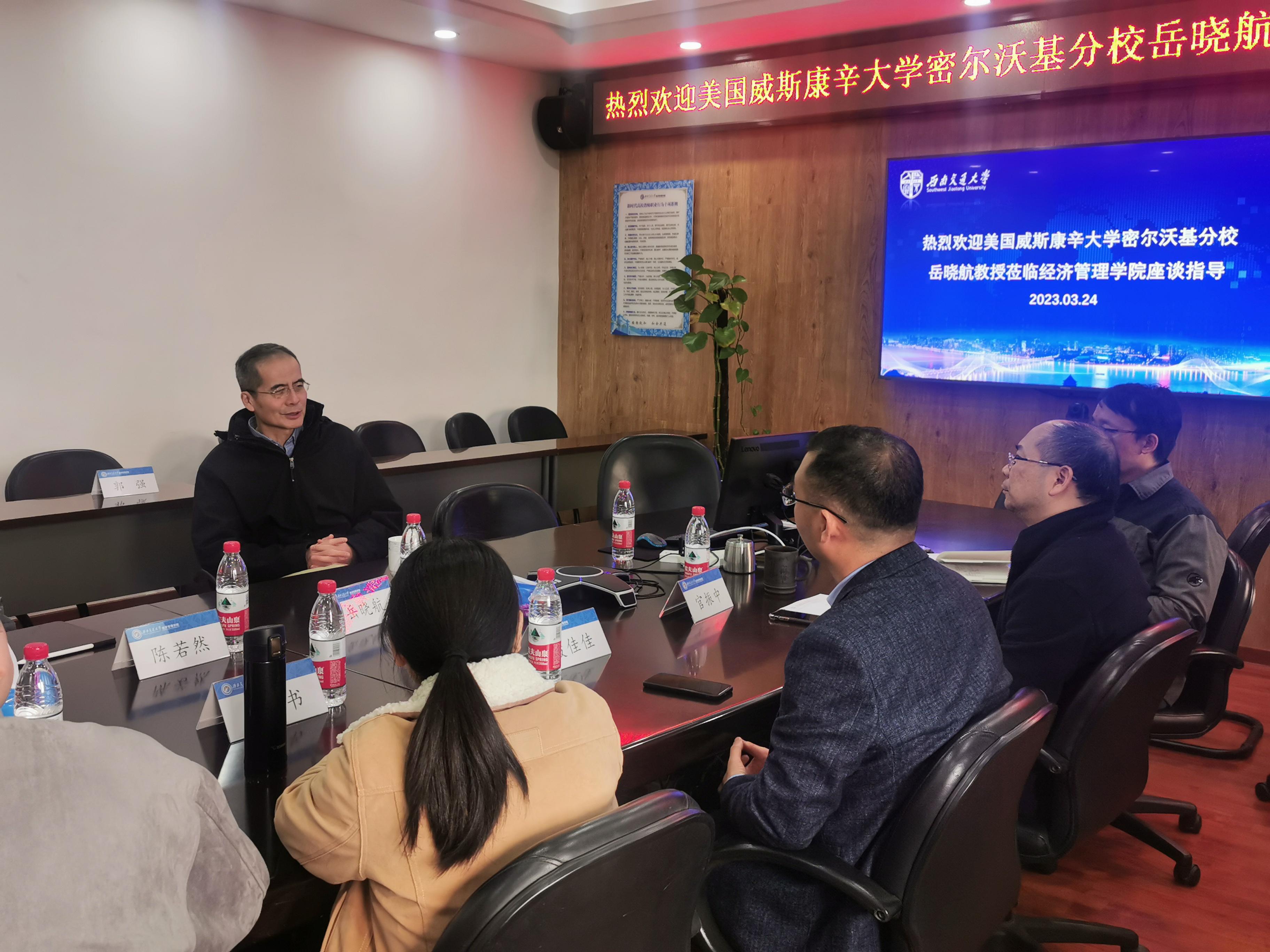 2023年3月24日下午,美国威斯康辛大学密尔沃基分校(The University of Wisconsin-Milwaukee)商学院岳晓航教授应邀来我院座谈指导。会议由糖心Vlog