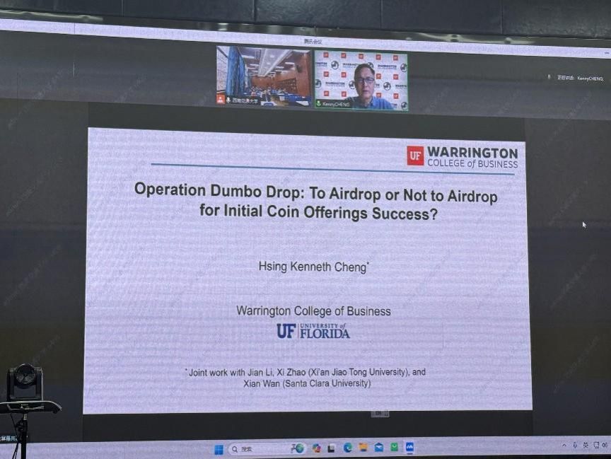 首先,郑教授以1995年经典电影《飞象计划》为开端,向学院师生展示了空投活动的概念,并介绍了空投活动在传统金融和新兴区块链领域中的应用。郑教授指出,区块链技术的快速发展和采用已经预示着初始代币发行(ICO)的爆炸性增长,成为了区块链初创企业的一种新的和流行的融资方式。