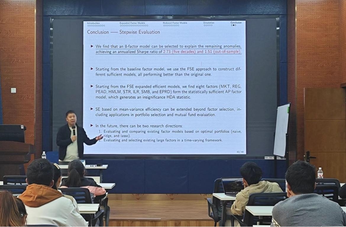 为我院师生带来了一场题为“大规模金融因子评估和筛选”的学术讲座。本次学术活动由我院副院长马锋主持,学院部分教师及研究生参加此次讲座,马锋副院长介绍了兰伟教授学术成果,并对兰伟教授到来表示欢迎与诚挚的感谢。