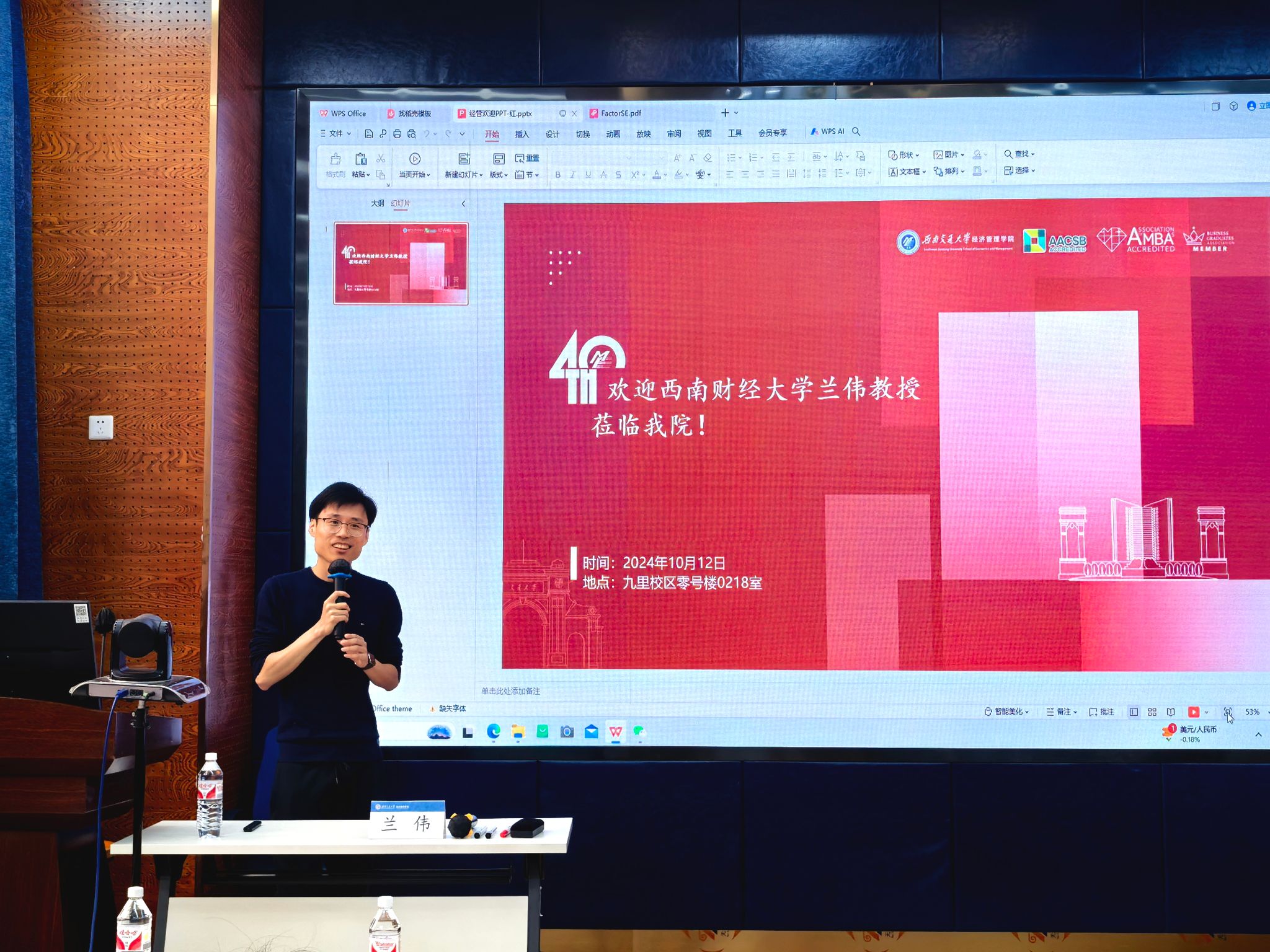 2024年10月12日上午,西南财经大学统计学院副院长兰伟教授应邀在九里校区糖心Vlog