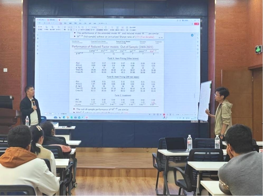 报告结束后,兰伟教授与学院马锋副院长就因子模型和方法与金融领域研究的结合进行了更深一步的交流与讨论,并与现场师生们进行了互动与沟通。马锋副院长对兰伟教授的精彩分享致以诚挚的感谢,并希望我院师生能够从本次科研分享中有所启发,开阔学术视野,提升科研水平。