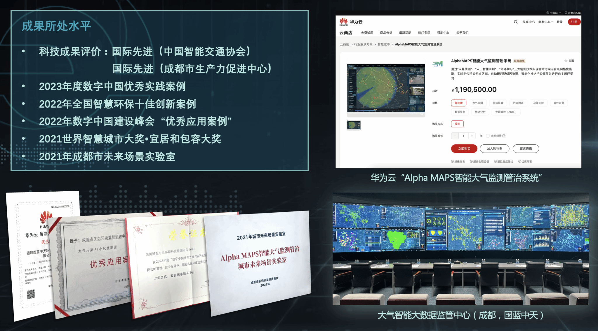 (5)获全球智慧城市大会“2021世界智慧城市大奖·宜居和包容大奖”,入选2023年度数字中国优秀实践案例、第五届“数字中国”数字生态优秀应用案例、中国环境报“2022年度智慧环保十佳创新案例”等。
