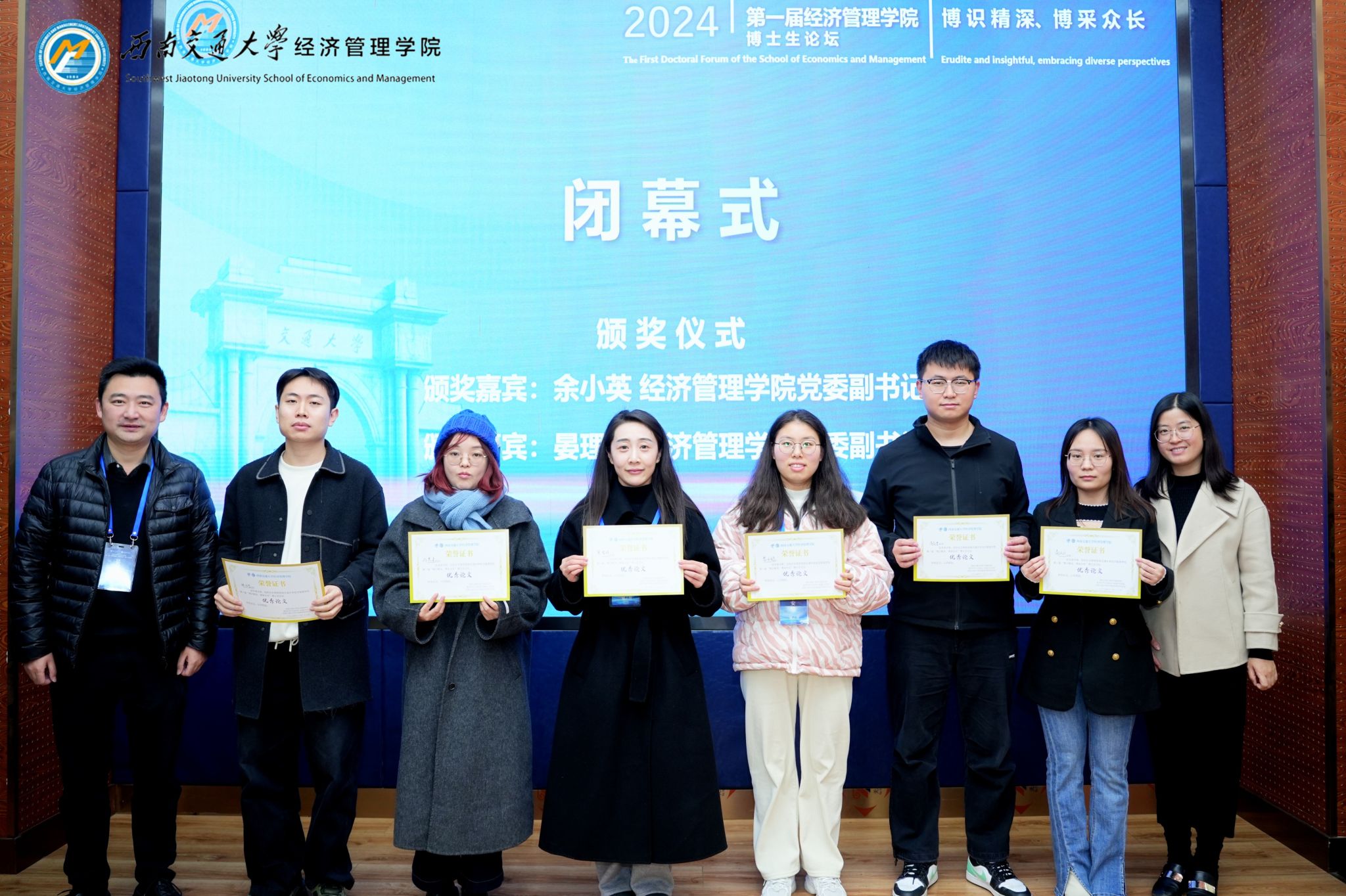 党委副书记余小英、晏理斌为本次论坛优秀博士生代表颁奖。