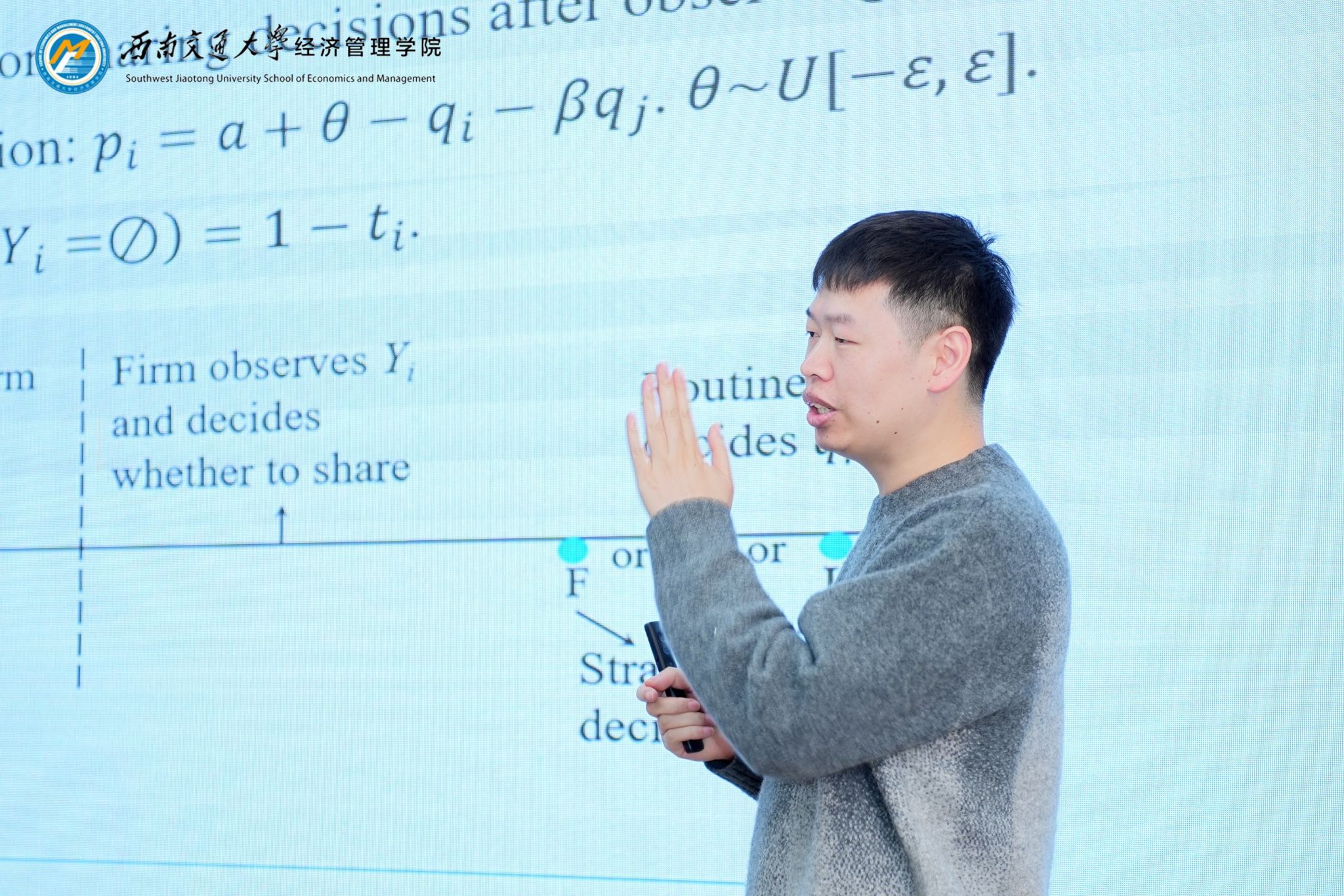 罗华江老师作主题为“Information sharing between competitors with endogenous production timing”的报告。该研究对竞争企业的需求信息共享动机及与生产时机策略间的相互影响展开分析。
