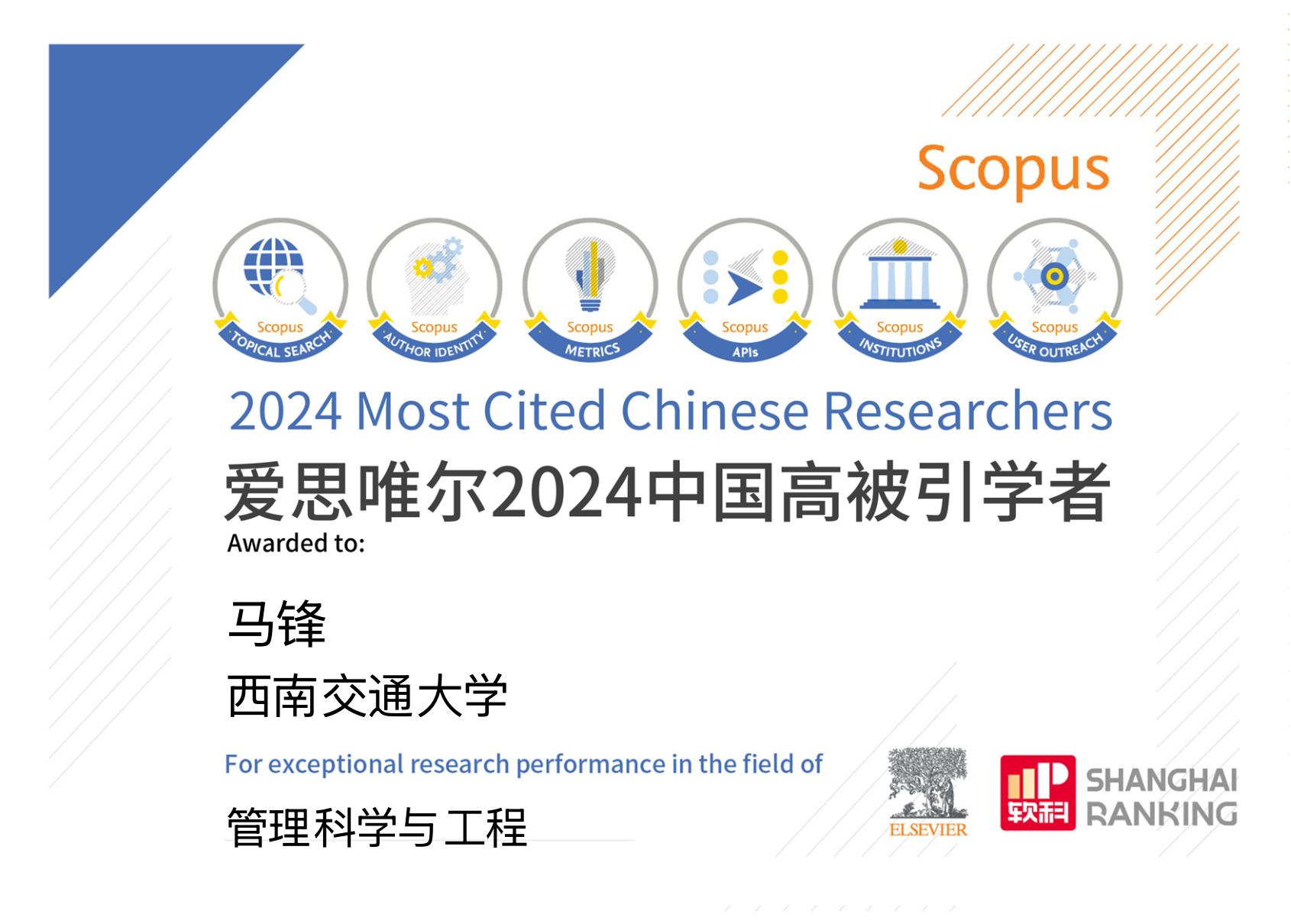马锋教授和梁超副教授入选管理科学与工程领域中国高被引学者。这是马锋教授连续第五年、梁超副教授首次入选该榜单。