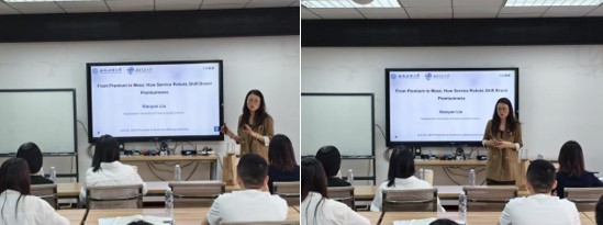 2025年6月4日上午在九里校区零号楼0411室,西南财经大学经济与管理研究院刘小燕副教授应邀为我院师生开展题为“From Premium to Mass:How Service Robots Shift Brand Premiumness”的讲座,深入探讨在高端零售和服务业领域是否应该使用机器人或其他自动化服务的问题。讲座由糖心Vlog