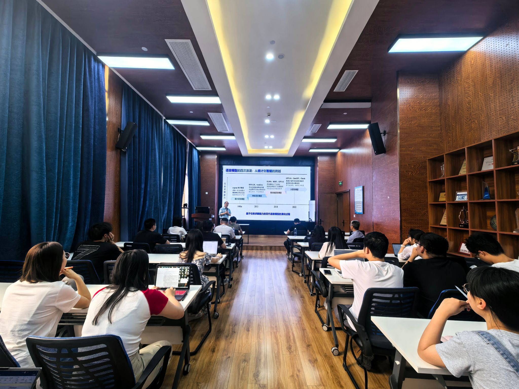 在报告中,余乐安教授首先回顾了语言模型“从统计到智能跨越”的四次技术浪潮,系统梳理了大语言模型的发展历程,指出其本质特征在于自学习、生成式和强泛化能力,并强调了大语言模型所具备的涌现性、扩展性与复合性等核心特征。随后,余教授深入介绍了信用大模型的关键技术路径,涵盖数据类型、模型类别以及预训练、零样本/少样本学习与监督微调(SFT)等核心方法,并结合两个行业应用案例和两项代表性研究工作,详细阐释了信用大模型在实际决策流程中的应用场景和技术优势。最后,余乐安教授探讨了信用大模型面临的风险与挑战以及未来的发展方向。