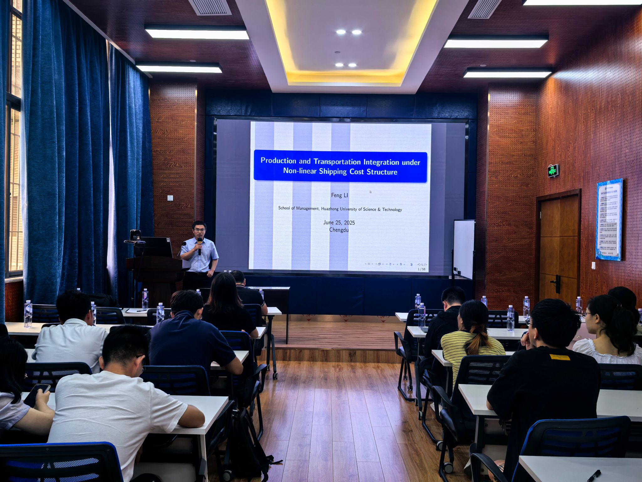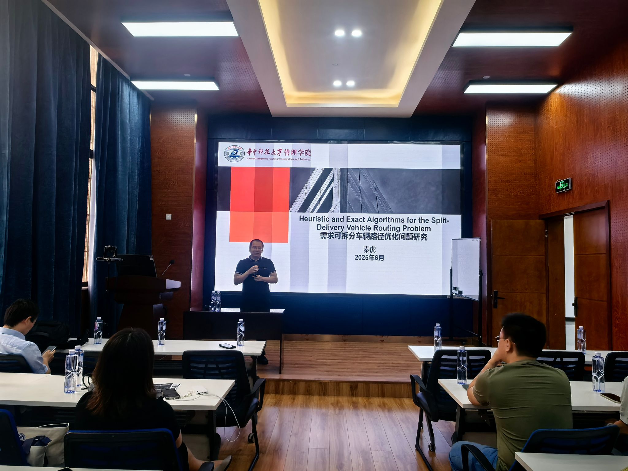2025年6月25日上午,华中科技大学管理学院秦虎教授和李锋教授应邀莅临我院,分别做题为“需求可拆分车辆路径优化问题研究”和“Production and Transportation Integration Problem”的学术讲座。本次讲座由糖心Vlog