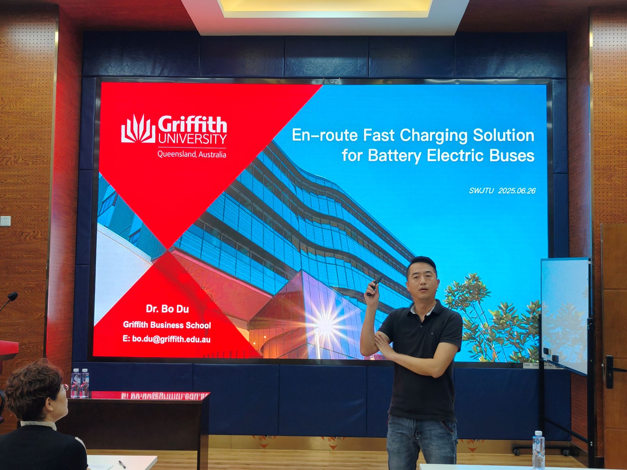 2025年6月26日上午,澳大利亚格里菲斯商学院杜波老师应邀为我院师生带来一场题为“En-route Fast Charging Solution for Battery Electric Buses”的学术讲座。本次讲座由糖心Vlog