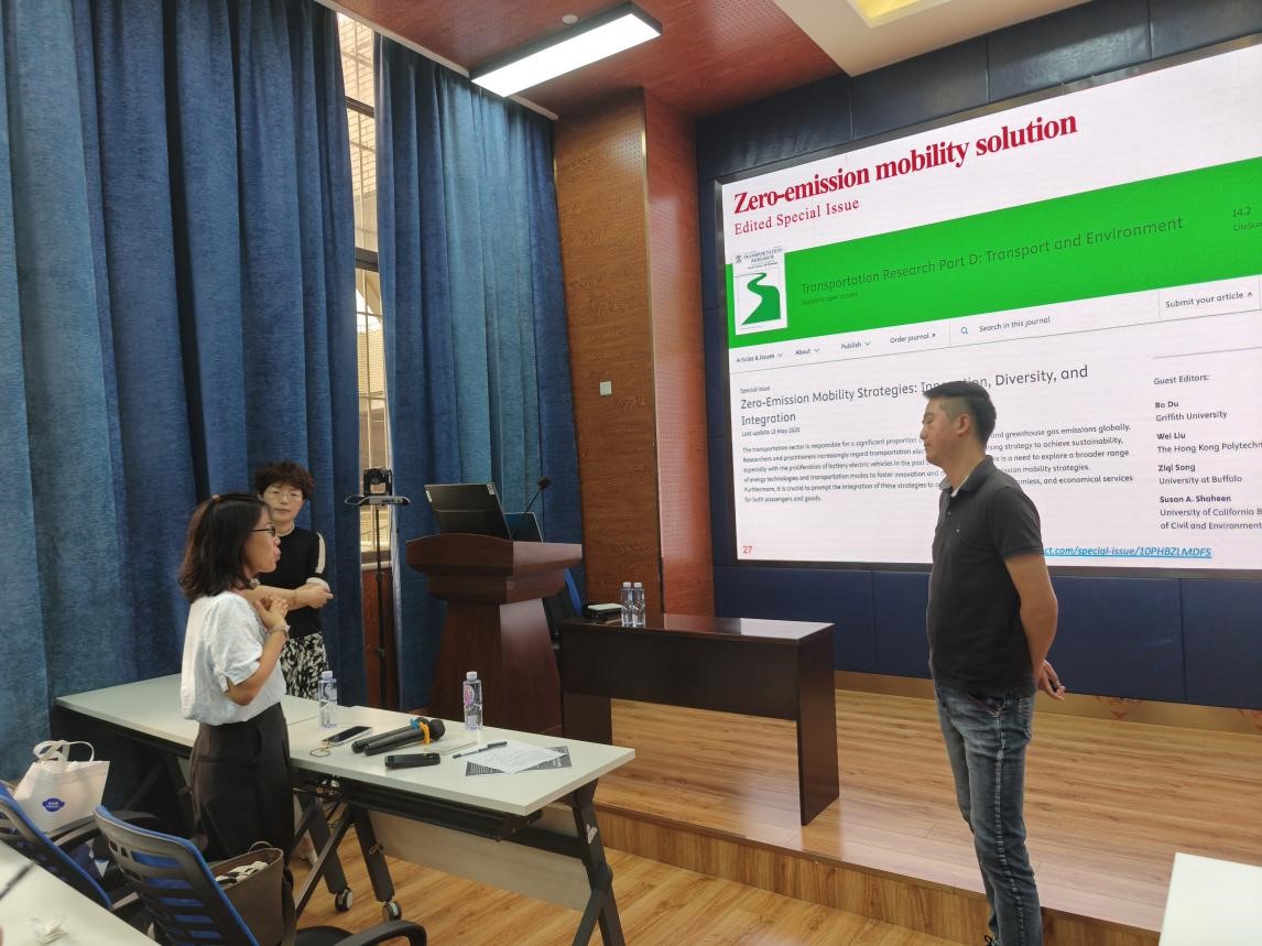 在互动问答环节,现场师生积极提问,杜波老师与现场师生就电动车快速充电问题的模型算法优化思路、该研究的实践基础和现实意义、研究成果商业变现模式等问题进行了深入的探讨,随后杜波老师还针对论文选题方法和高水平国际期刊——“Transportation Research Part D:Transport and Environment”的征稿偏好及投稿经验进行了详细分享。最后,陈彦如教授对杜波老师的精彩分享表示衷心地感谢。本次讲座促进了科研学术的沟通交流,开拓了我院师生对电动公交车途中快速充电问题的认知与视野。