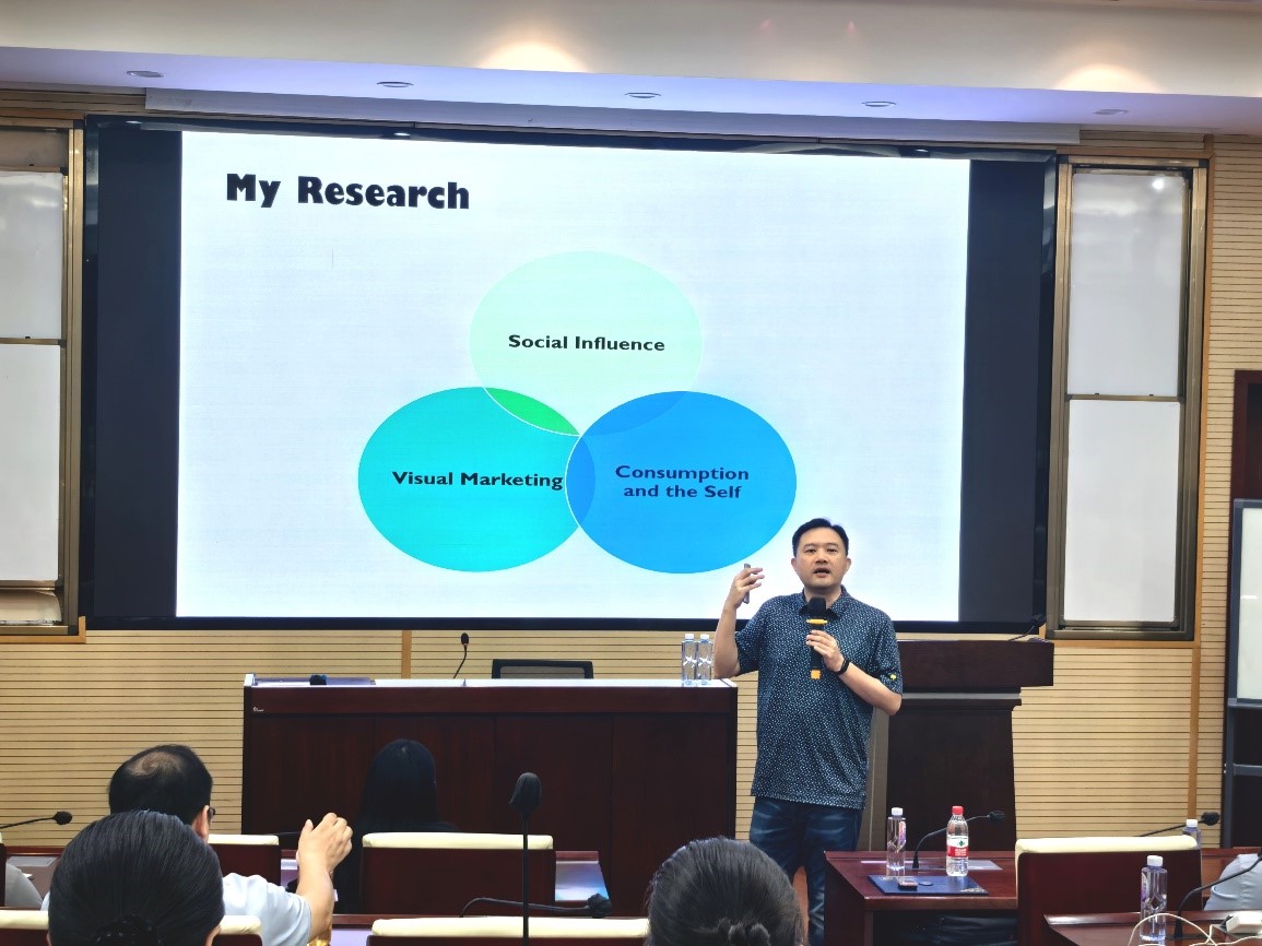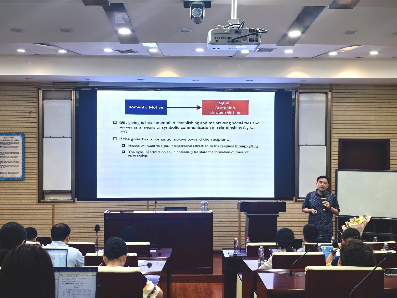 聘任仪式结束后,姜宇威教授应邀为我院师生开展题为“Romantic Gifting ”的讲座,深入探讨在亲密关系中赠礼情境下对性别化产品偏好的问题。讲座由我院市场学系主任范春梅副教授主持。