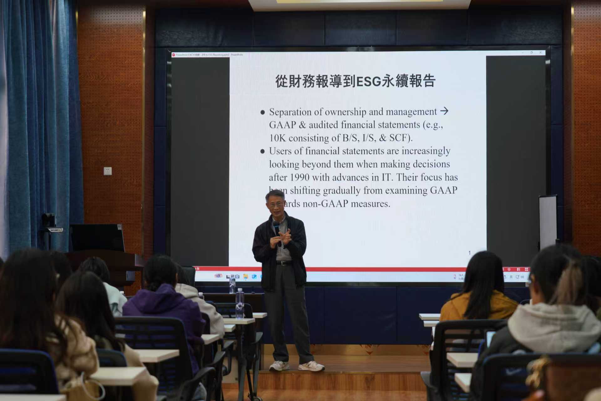 11月5日,张锡惠教授以"FR to ESG Reporting"为题,深入讲述企业从披露财务报告到披露ESG报告的演进,探讨了这一趋势背后的原因并探讨企业战略与ESG行为的匹配度对财务绩效的影响。