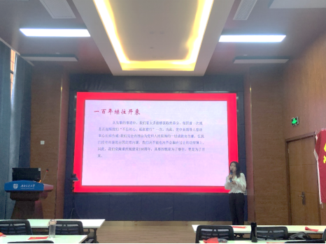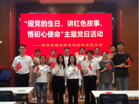 本科经贸类党支部在2021年7月7日J0218举办“迎党的生日、讲红色故事、悟初心使命”主题党日活动,全体党员、预备党员、积极分子参加本次主题活动。通过党员分享可歌可泣的英雄人物,勉励支部成员追忆红色经典、传承红色基因、凝聚前进力量。在中国共产党成立100周年之际,不忘初心,牢记历史使命。
