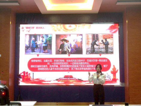 首先,预备党员邓紫莹为大家分享了“淘米人”刘启耀的故事,他是一位伟大的革命战士,虽然“腰缠万贯”,却宁愿乞讨度日,也不动一分一毫。像他这样“对党忠诚,表里如一”的革命前辈,正是我辈学习的楷模。跟当时曾山交付给他的一分不差,在场的同志无不为他的大公无私而感动。直到离世时,他依然穿着打着补丁的衣衫。