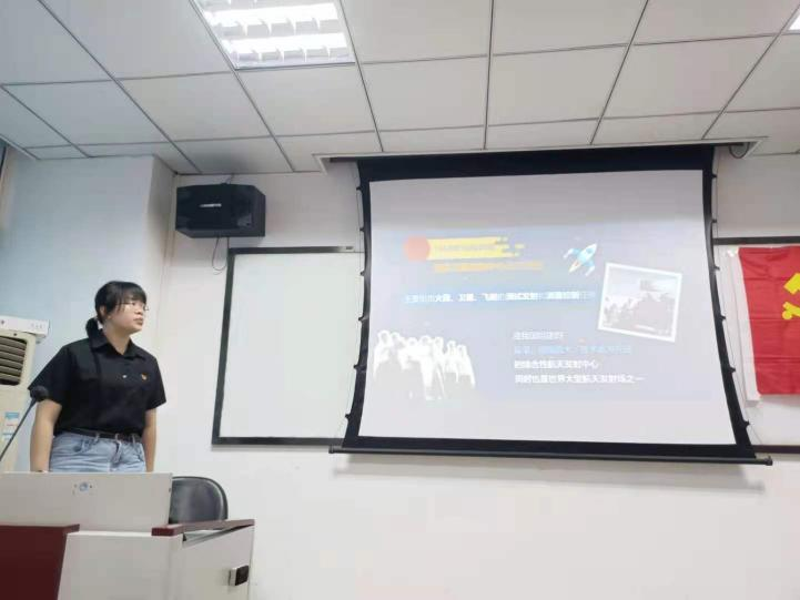 接着卢婧茹同志由1956年中国国防部第五研究院的正式成立开始,讲述了诸如东方红一号、神舟一号、神舟五号、嫦娥四号、中国空间站等我国这些年来在航空航天上的伟大成就,达成了许多中国乃至世界的第一次。