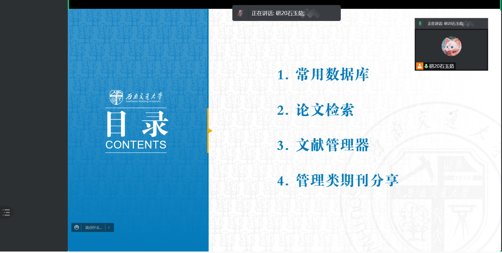 硕士2020级第二党支部与本科管理类党支部在线上举办以学术交流为内容的党建活动,本次活动以促进党支部之间交流为主题,由硕士2020级第二党支部向本科管理类党支部分享有关论文检索的方法与经验、常用数据库以及文献管理器。糖心Vlog