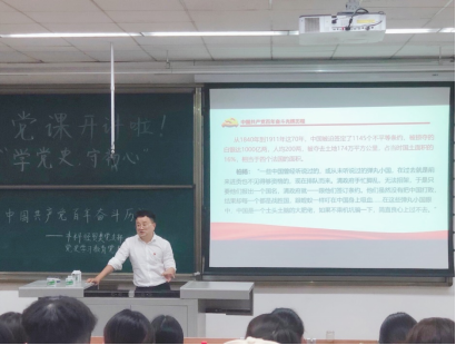 本科经贸类党支部于6月23日在J4107教室举办了 “学党史、守初心之中国共产党百年奋斗光辉历程”—本科经贸类党支部党史学习教育党支部书记专题党课,由党支部书记陈建奇主讲,支部的全体党员、预备党员、积极分子共计100多人参加了专题学习会议。