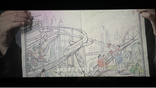 电影里有许多令我们感动并难以忘却的画面,影片里邓老师问同学们100年后的中国是什么样子,唯有文婷同学交了一幅特殊的答卷。在她的画中,有高耸入云的大厦,有四通八达的交通,火车有了翅膀,百姓安居乐业。“把铁路修到天上去,也许还能修到月亮上去”,这是故事中同学们的对未来美好生活的向往,但在今天的生活里,他们那些看似不可能的想象,已经一一变成现实。
