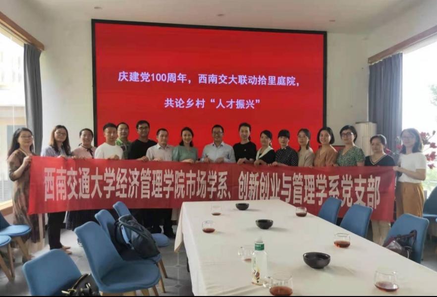 市场学系、创新创业与管理学系党支部于6月10日来到新都区新繁街道汪家村,走进四川源素轻旅文旅科技集团,联合开展院企合作特色党建活动暨乡村振兴研讨会。市场学系、创新创业与管理学系党支部一行16名教师参加了本次活动。四川源素轻旅文旅科技集团的三位创始人董事长李彪、人力资源总监李欣、直营主管李中丽参加了此次活动。