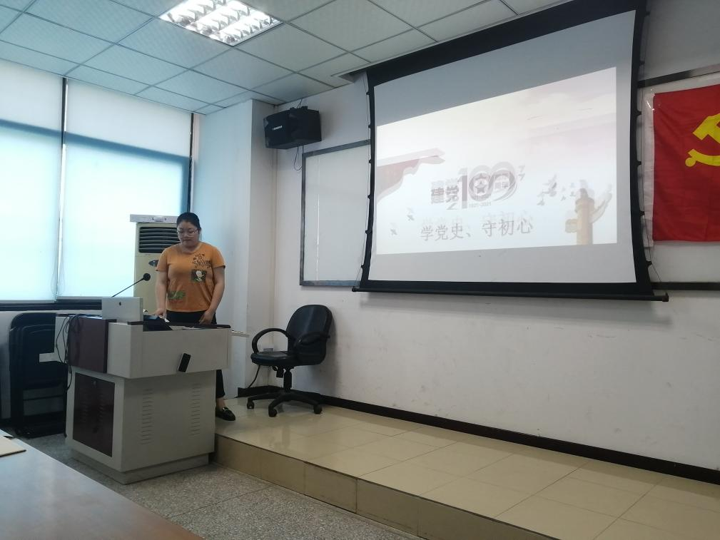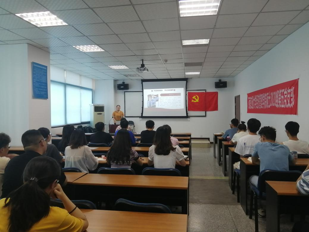 党支部书记杨春洪主要从不忘入党初心、不忘党的初心、不忘职责使命和扛起新使命四个方面给我们进行了详细讲解。