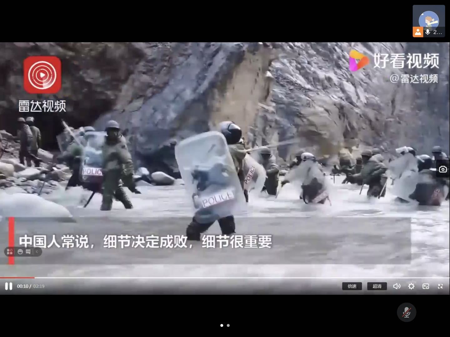 接下来主讲人为我们播放了近期中印边境对峙的视频。可以清晰的看到,冲突发生后,中方为维护两国两军关系大局,推动局势降温缓和,保持了高度克制,体现了中国作为负责人大国的气度担当。此时冲突中,我方牺牲四名官兵,中国崇敬烈士,更珍惜生命,在清明之际,再度回顾缅怀四名先烈。