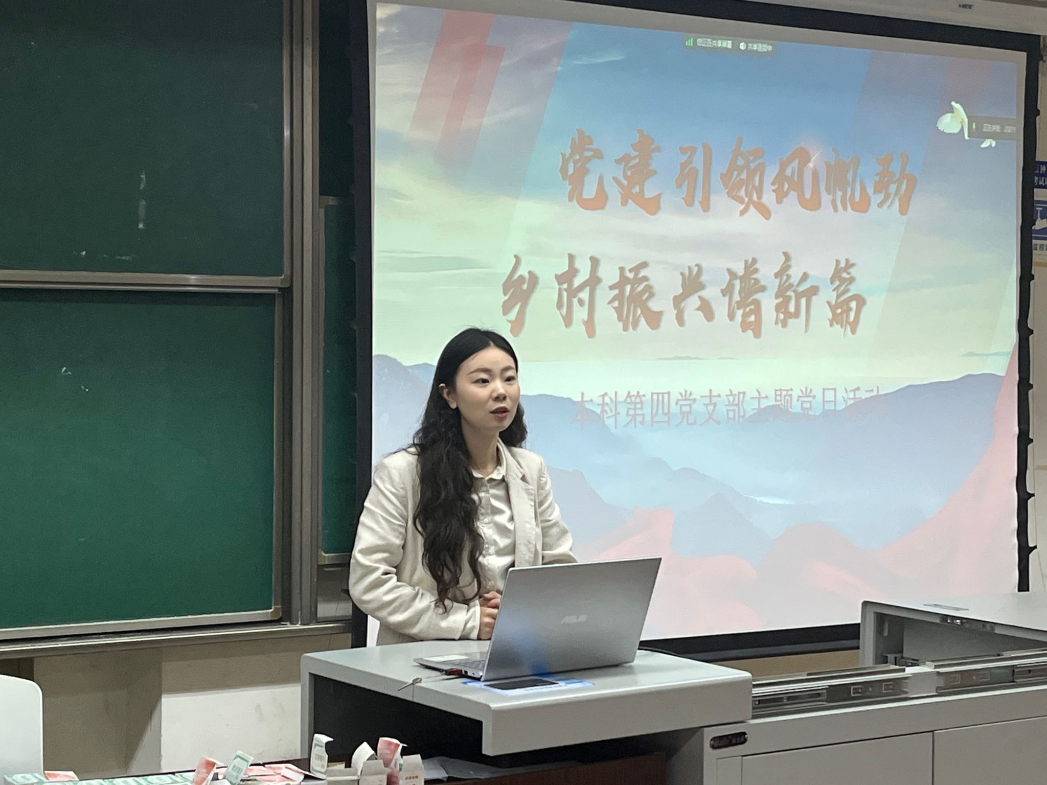 本科第四党支部在九里校区逸夫馆J4209组织开展了“党建引领风帆劲,乡村振兴谱新篇”主题党日活动。