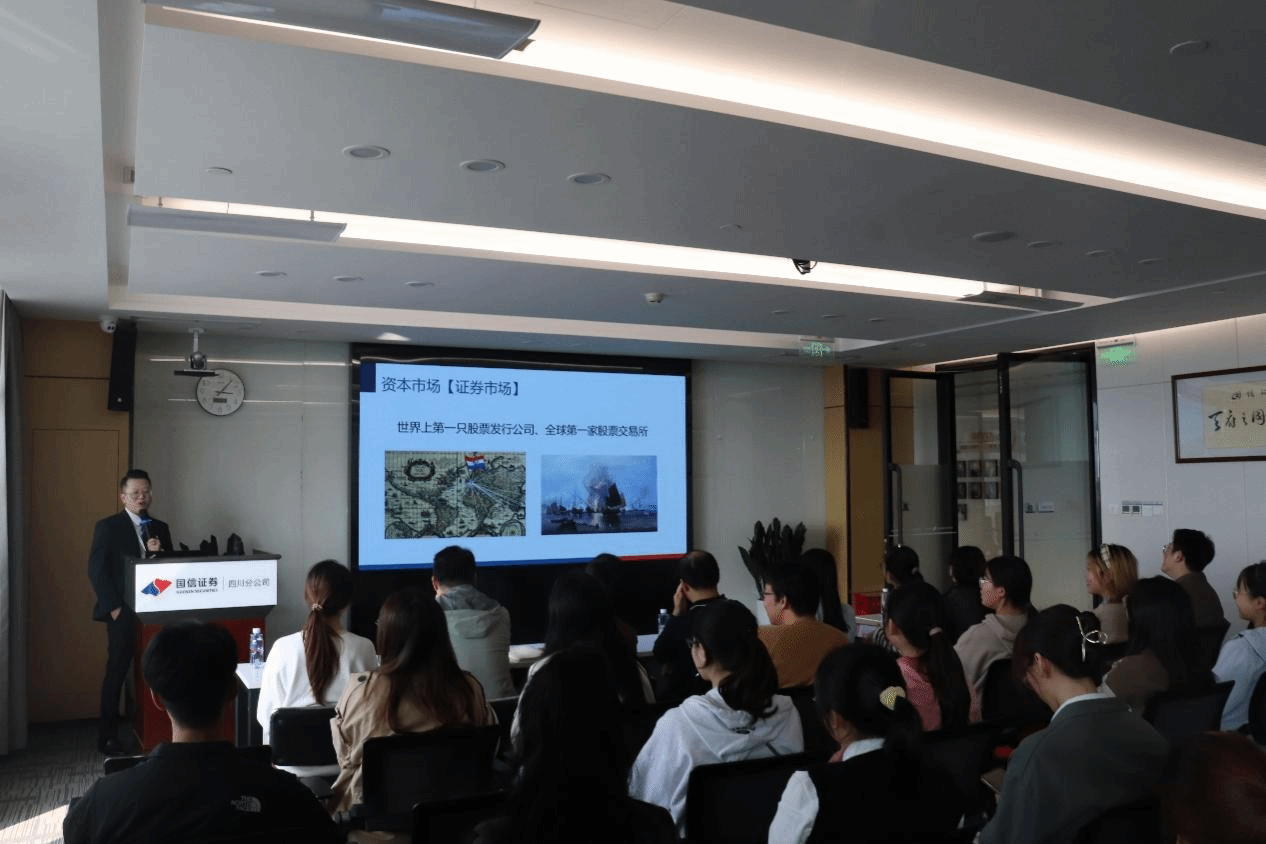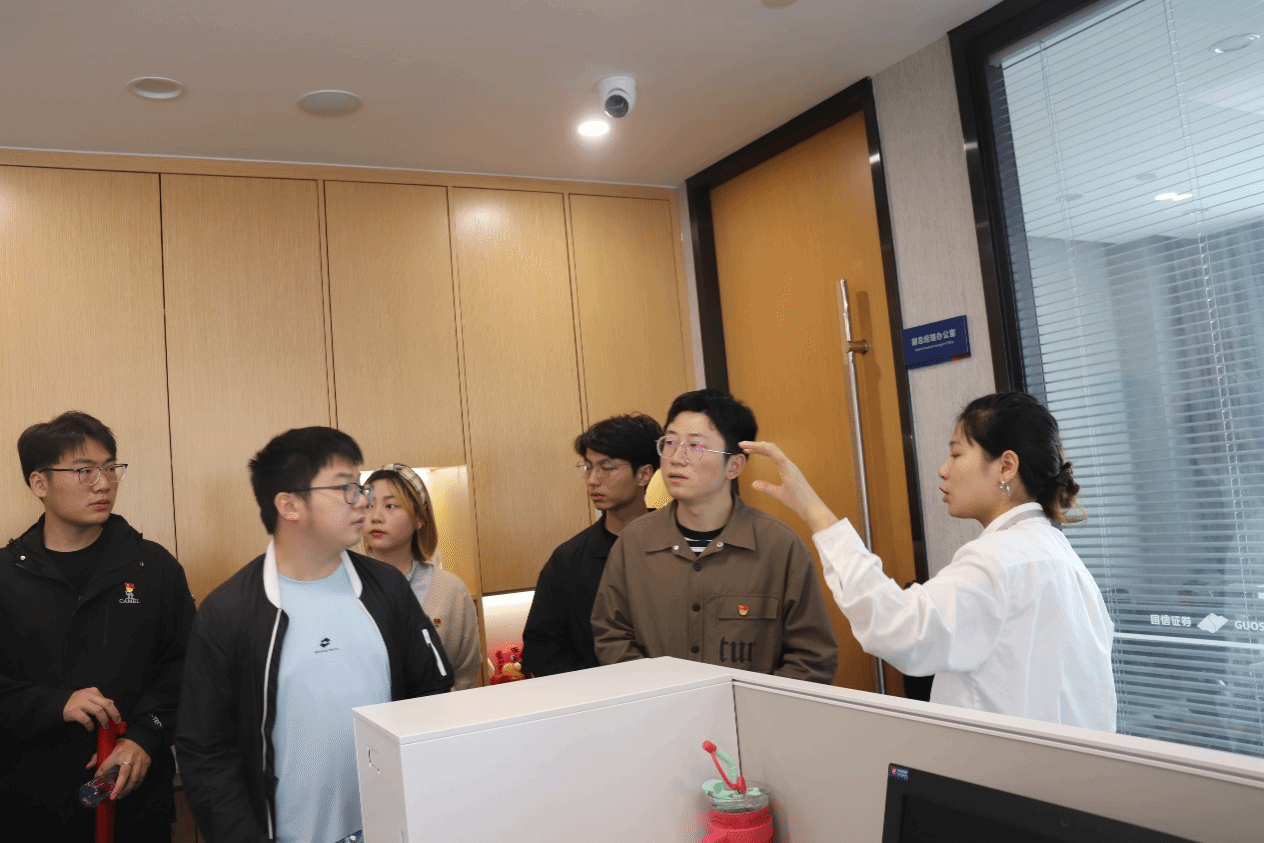 抵达后,国信证券的领导和工作人员热情接待,并对我院师生的到来表示热烈欢迎。随后,大家在工作人员的带领下进入会议室落座,国信证券理财三部的周圆皓经理简要介绍了此次活动的流程,本次党建共建活动正式开始。