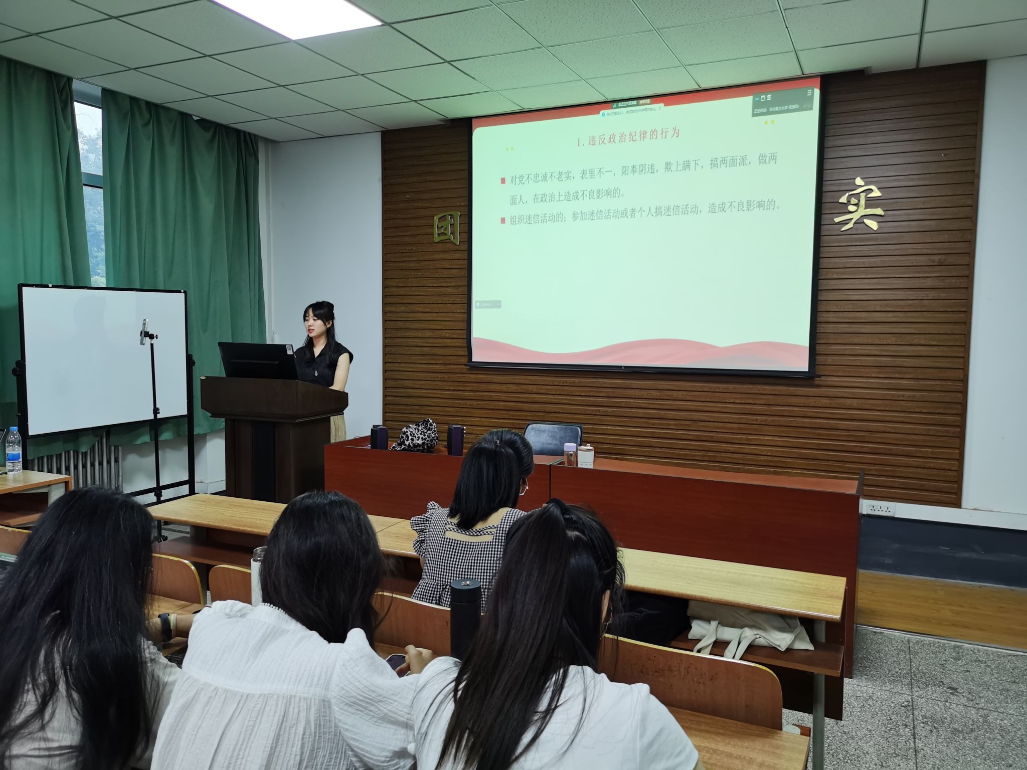 华北电力大学经济管理系研究生第四党支部书记吴彬玮作为首位主讲人,首先分享了该支部党建工作的特色亮点:注重思想引领,坚持将“线下到会学+线上掌中学”相结合;持续发挥模范作用服务同学,定期组织“党建+志愿服务”特色活动;不断创新实践探索新思路,“校内+校外”双管齐下。随后,吴彬玮用五个现实案例分析鞭辟入里,让与会人员充分意识到党员严格遵守党纪党规的重要性和必要性,帮助树牢纪律红线意识。