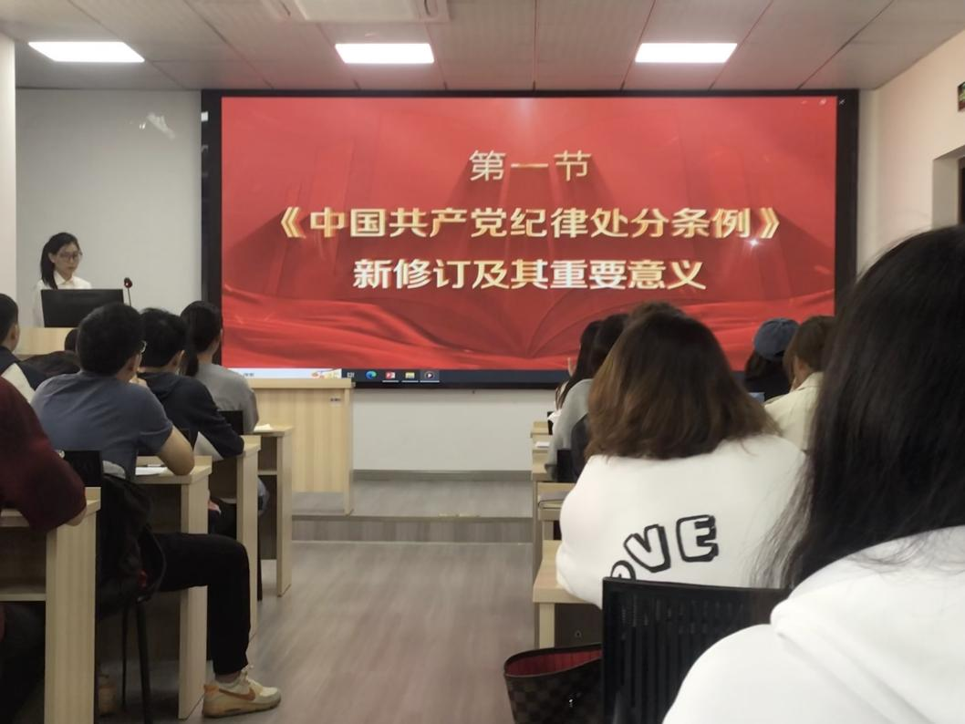 团委书记贾佳老师以视频方式为大家讲解了《中国共产党纪律处分条例》相关知识。贾佳老师着重强调了党的六大纪律,即政治纪律、组织纪律、廉洁纪律、群众纪律、工作纪律和生活纪律。通过讲解,让大家深刻认识到要做到学纪、知纪、明纪、守纪,时刻以党的纪律严格要求自己,保持党员的先进性和纯洁性。贾佳老师明确指出,入党积极分子要做到学纪、知纪、明纪、守纪,时刻以严格的纪律要求规范自身行为。晚上,来自学校晚晴讲师团的徐嘉宁老师为大家讲解了中国共产党的指导思想。徐嘉宁老师详细阐述了党的指导思想的产生背景、核心内容和重大意义。让大家更加深入地了解了中国共产党在不同历史时期,始终坚持以正确的指导思想为引领,不断推进中国革命、建设和改革事业的发展。