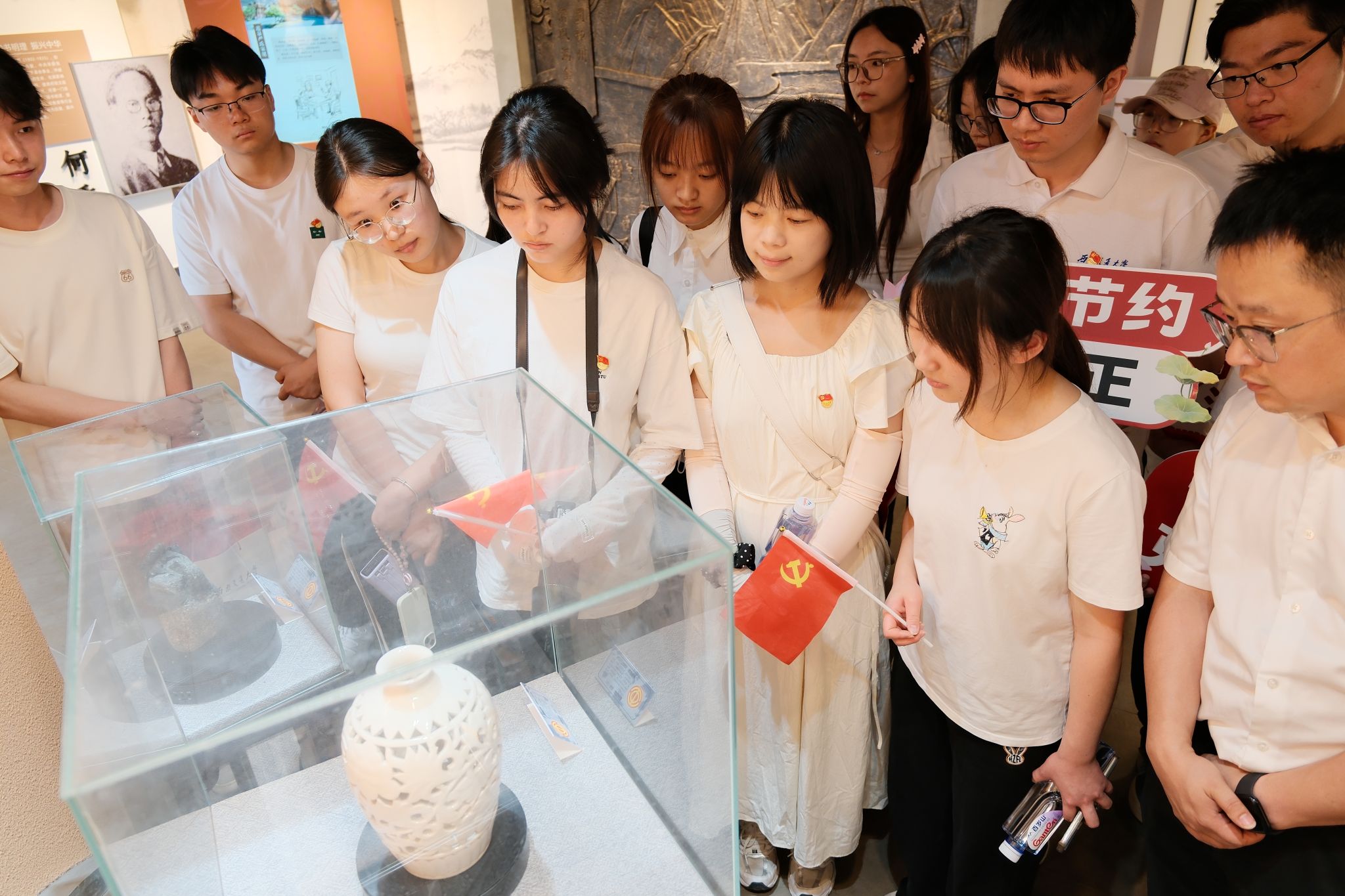 参观完展厅后,党支部全体党员面向党旗,举起右手,重温入党誓词。宣誓声铿锵有力,彰显着大家对党的忠诚与坚守廉洁初心的决心。