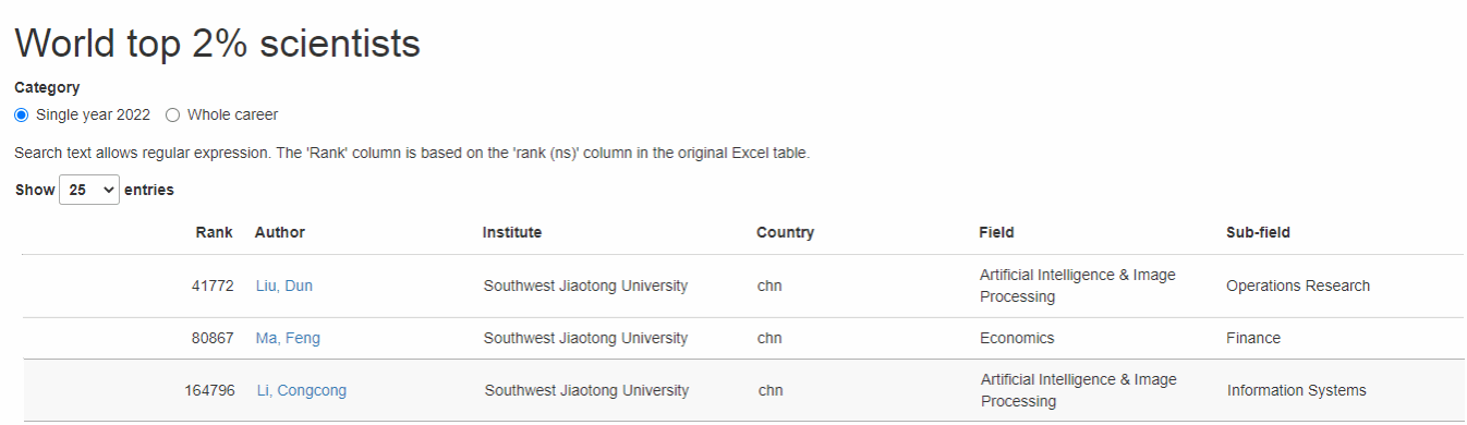 【科研】祝贺!我院刘盾、马锋和李聪聪三位老师入选2023年全球前2%顶...